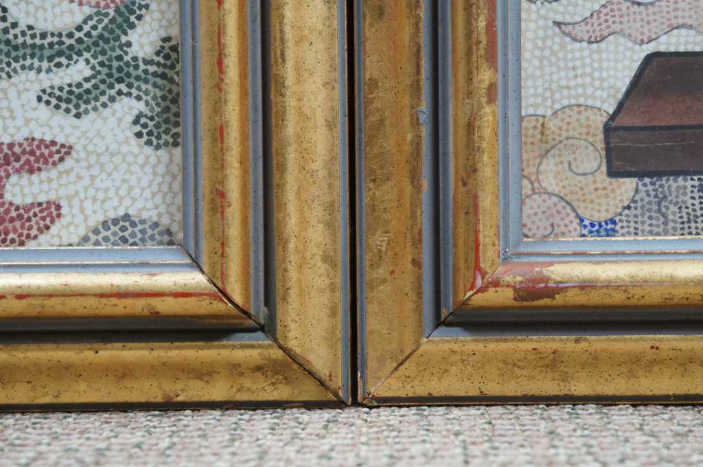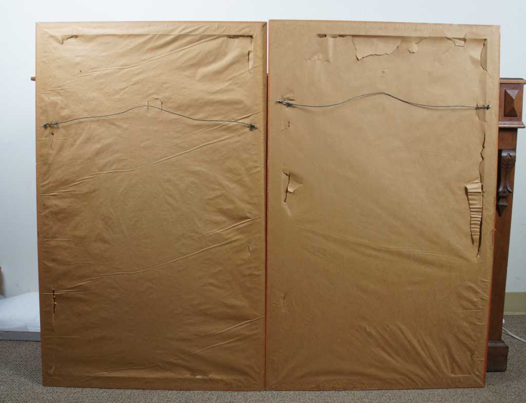 Pair of two late 19th century Chinese ancestor portraits, features and emperor and empress dressed in traditional robes. Features imagry of foo dogs, dragons, pheonix, and other colorful details.