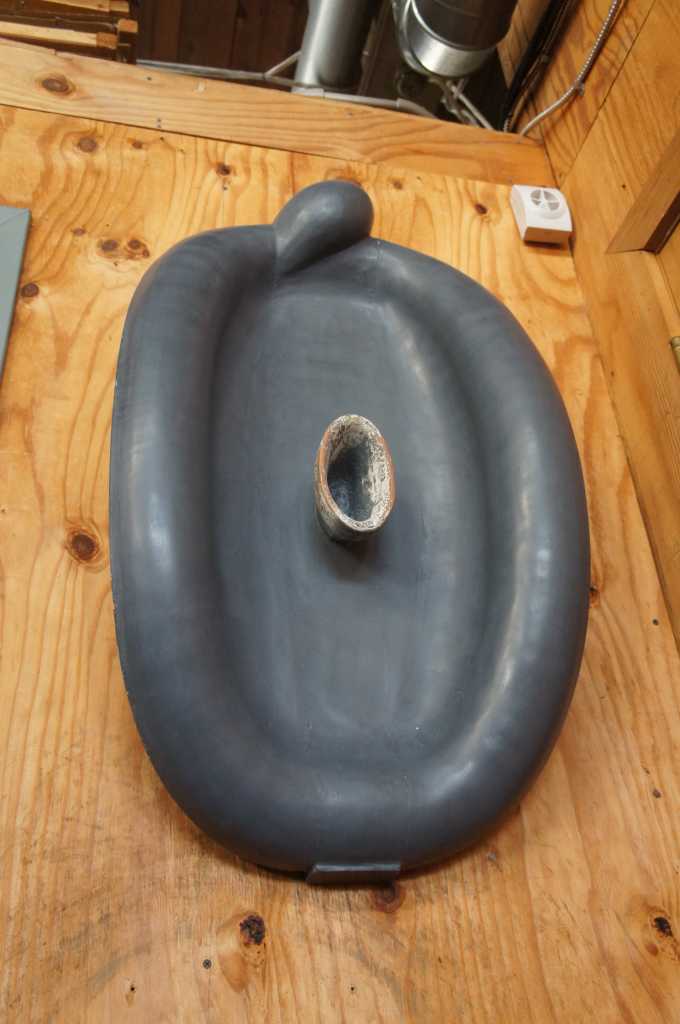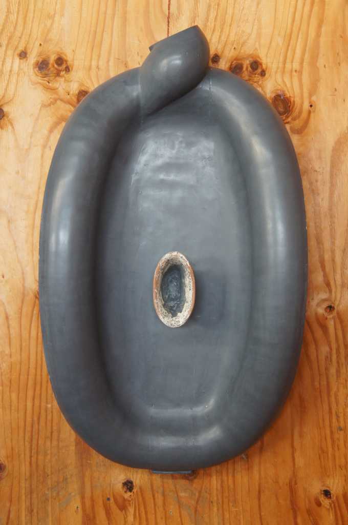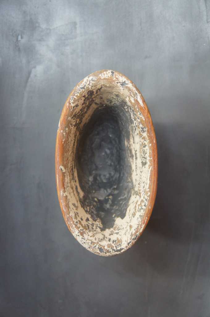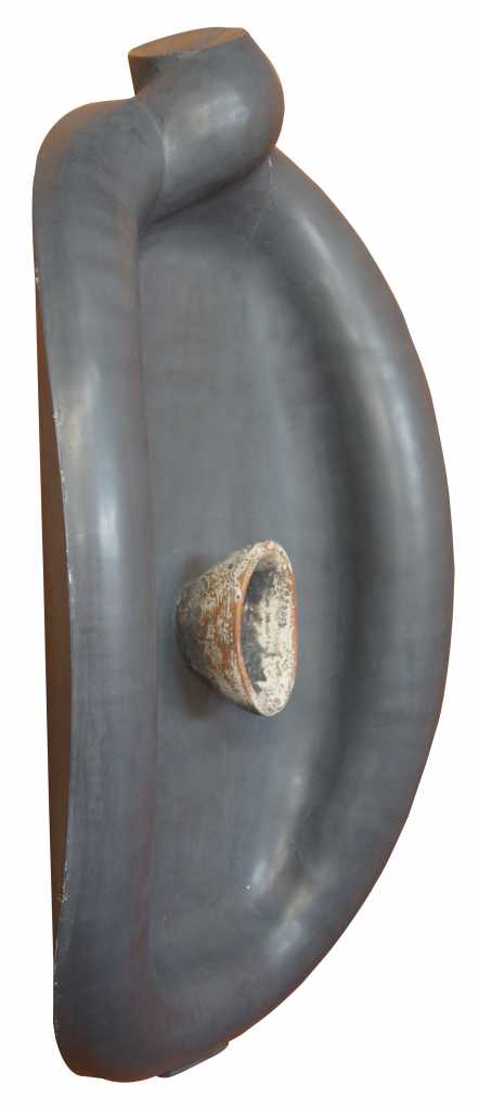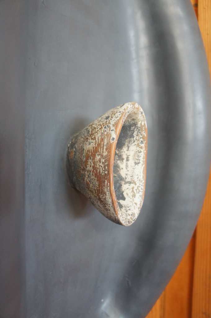 1991 Jack Carter wall medallion sculpture. Features modern styling with tortoise shell shape and hand carved detail / painted finish.