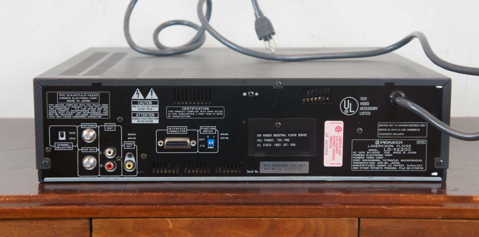Pioneer LD V2200 Laserdisc Laservision Player. Features original box and manual.