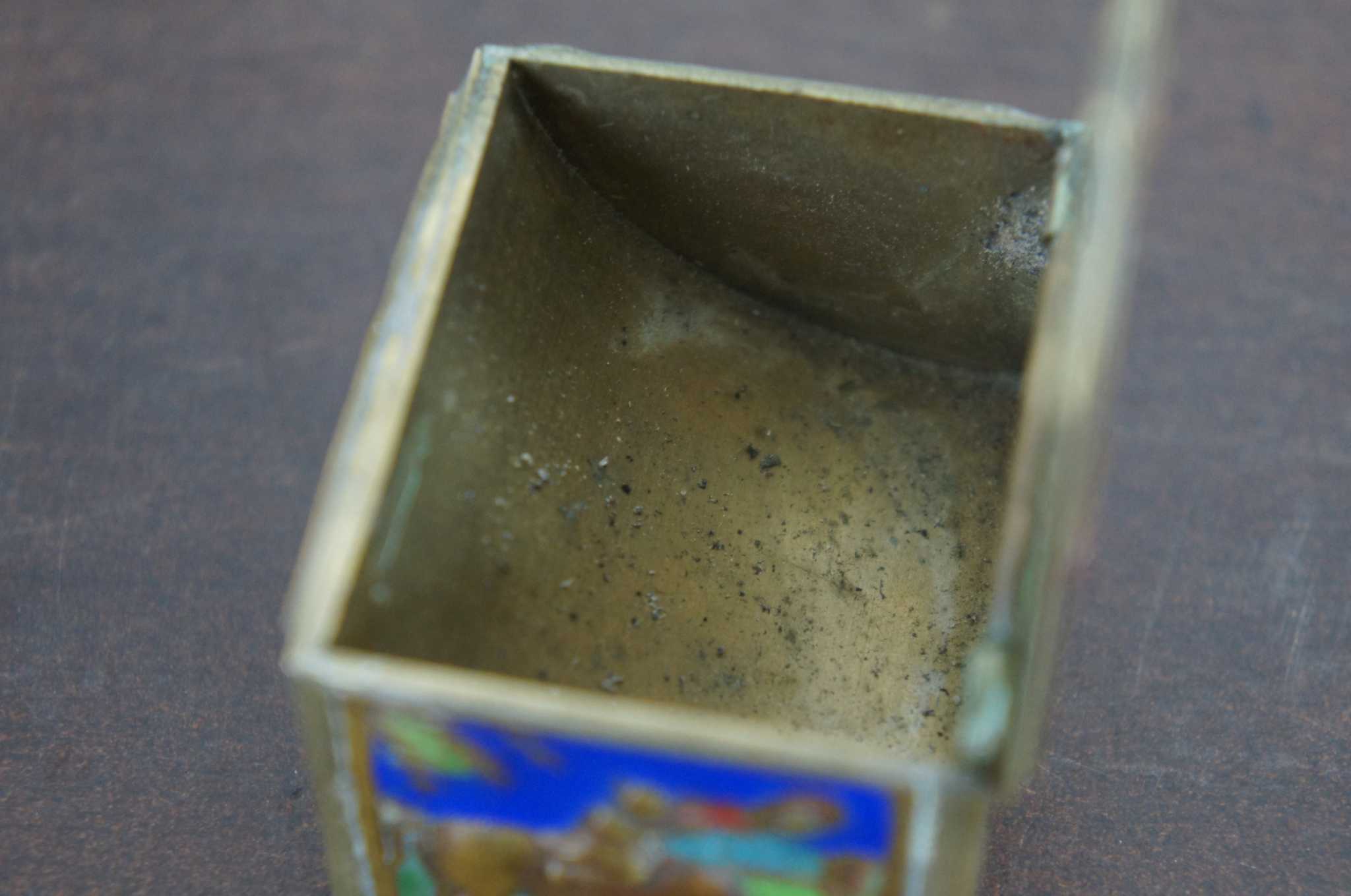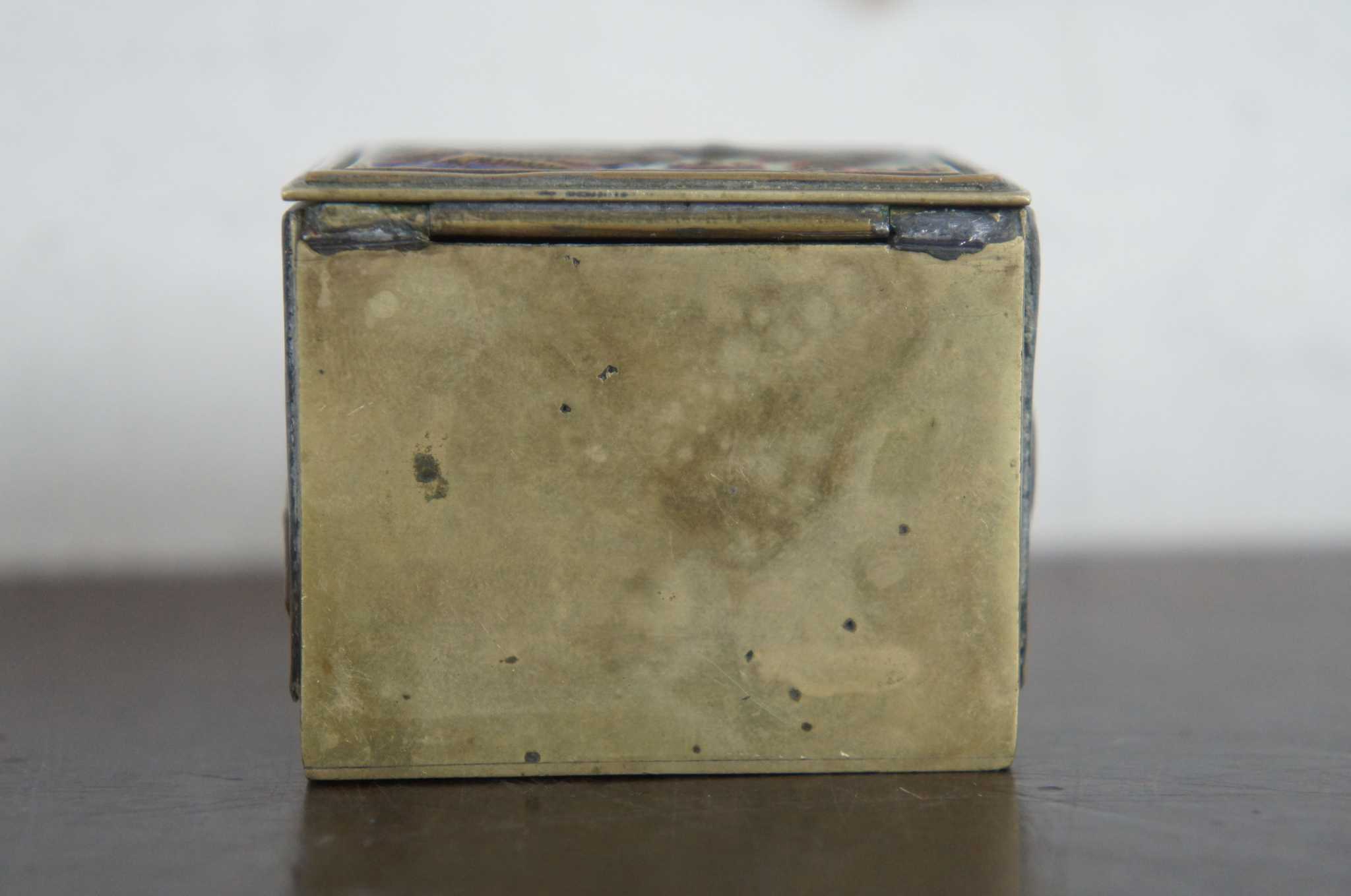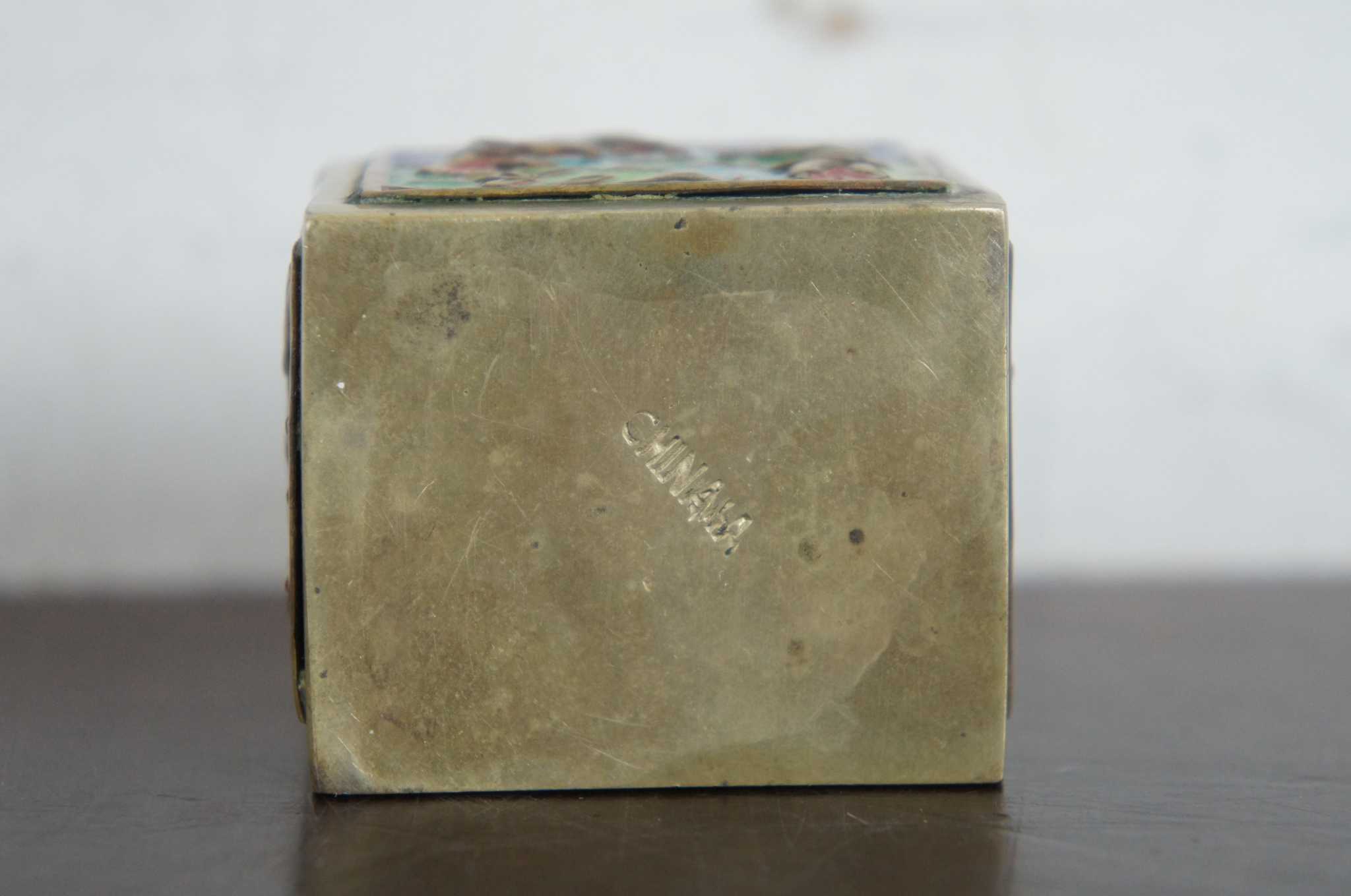Chinese Vintage Cloisonne Enameled Brass Postage Rolled Stamp Dispenser Trinket Box