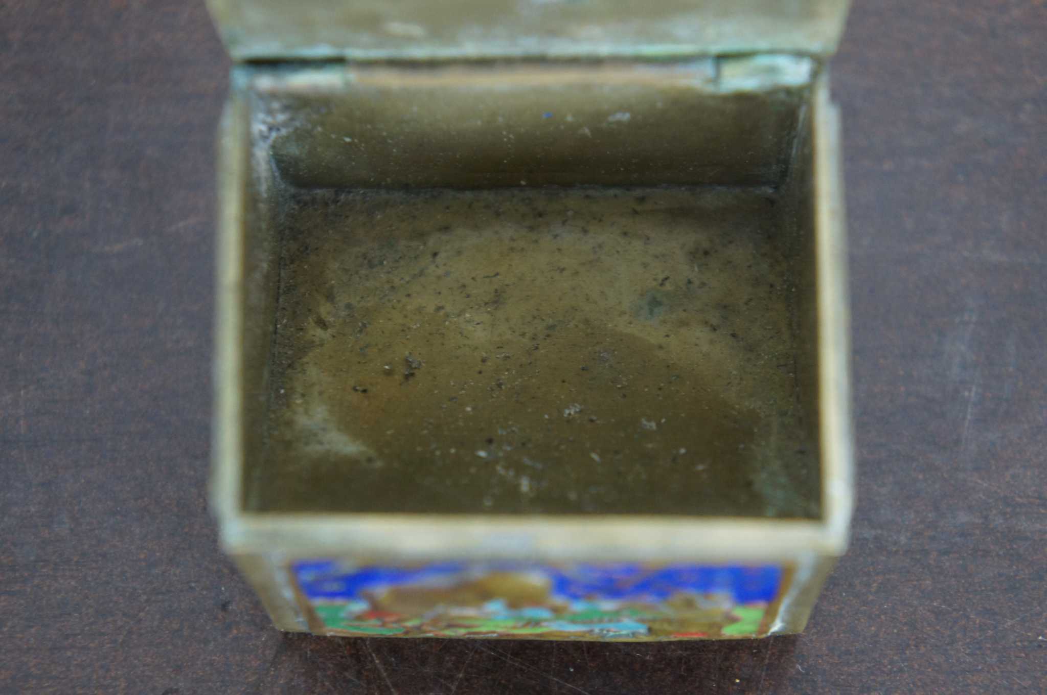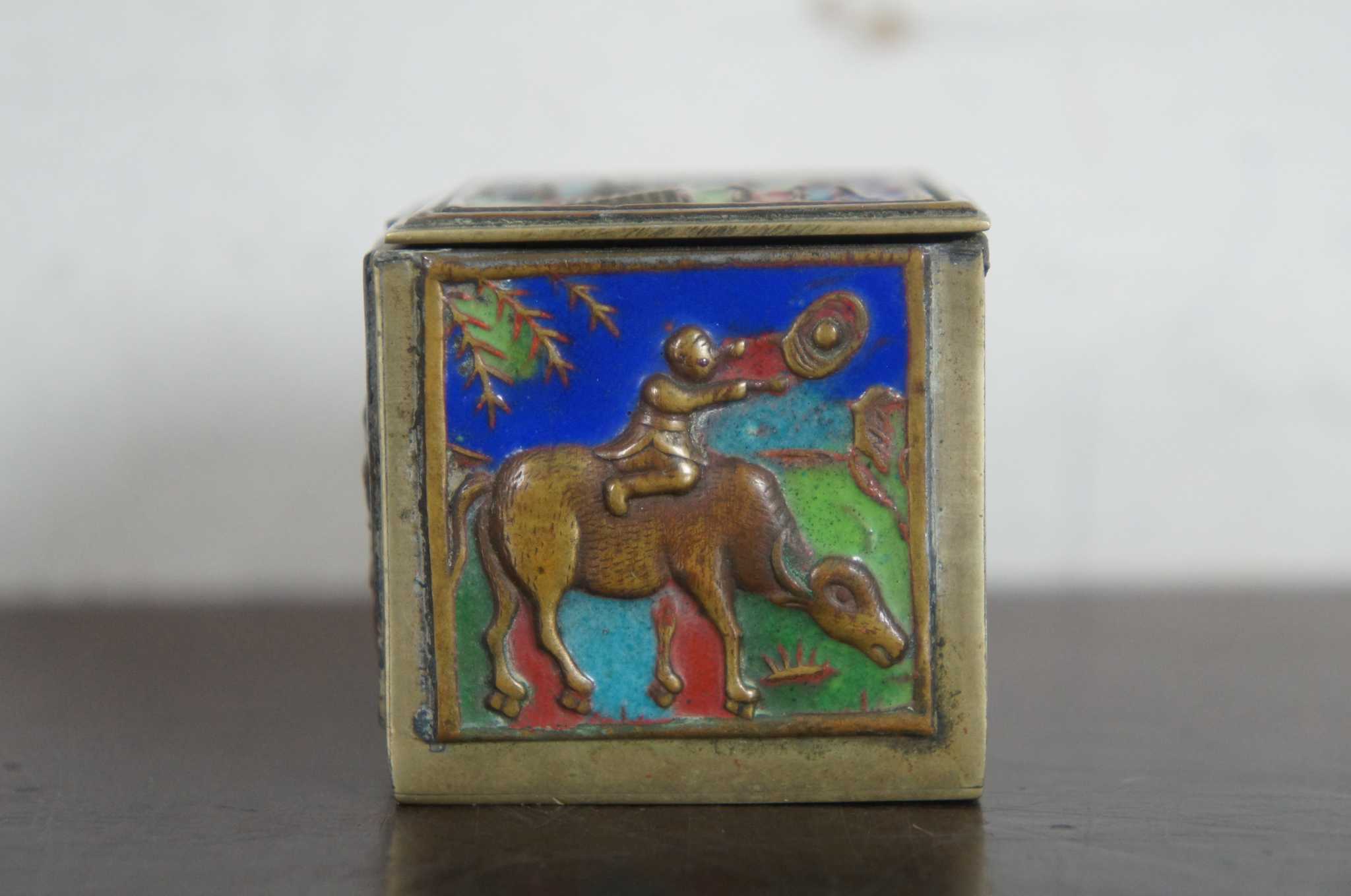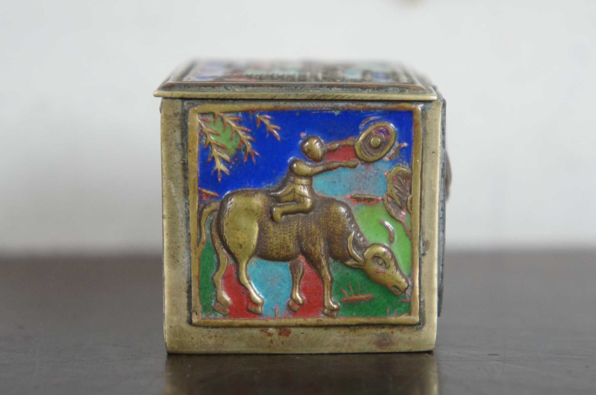 Chinese Vintage Cloisonne Enameled Brass Postage Rolled Stamp Dispenser Trinket Box