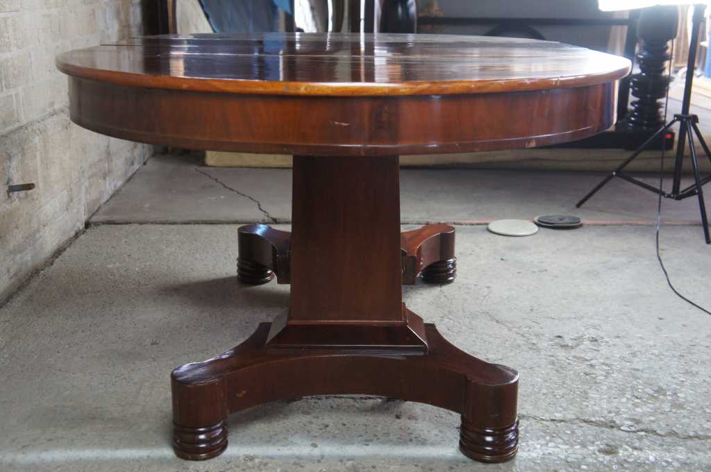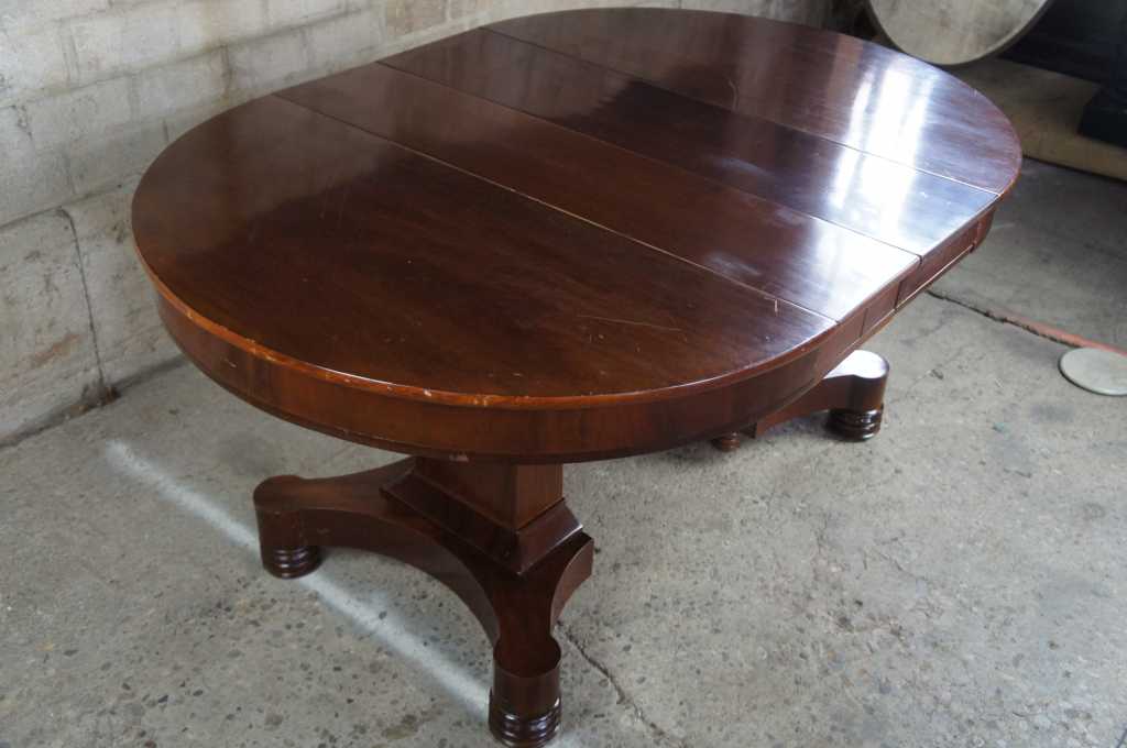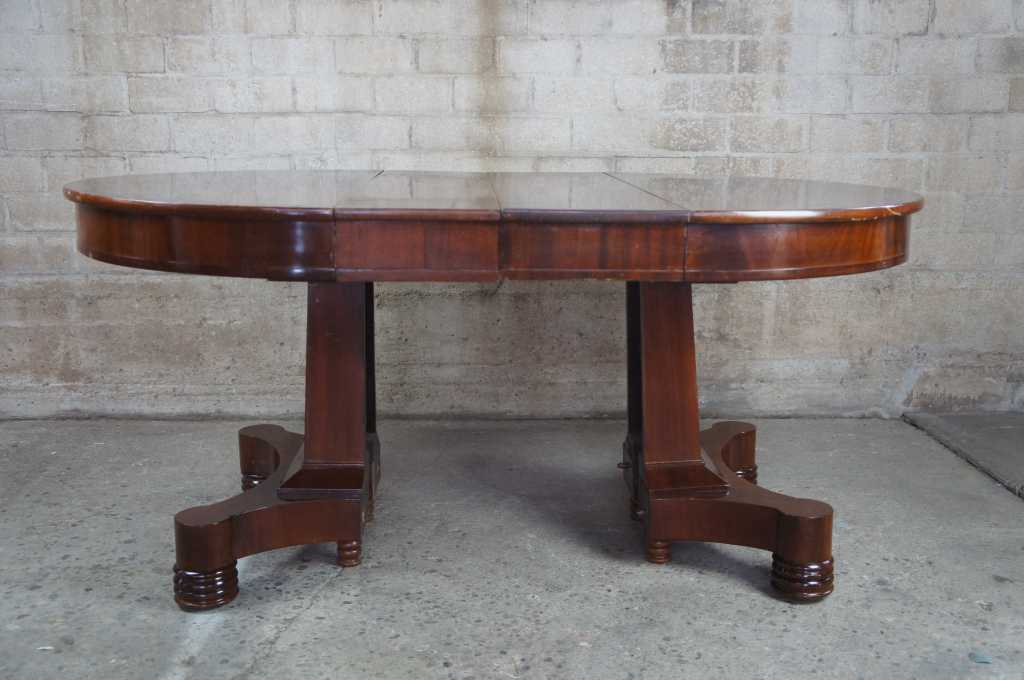 Mid 19th century American Empire dining table. Made from mahogany with split base, extendable with two leaves.