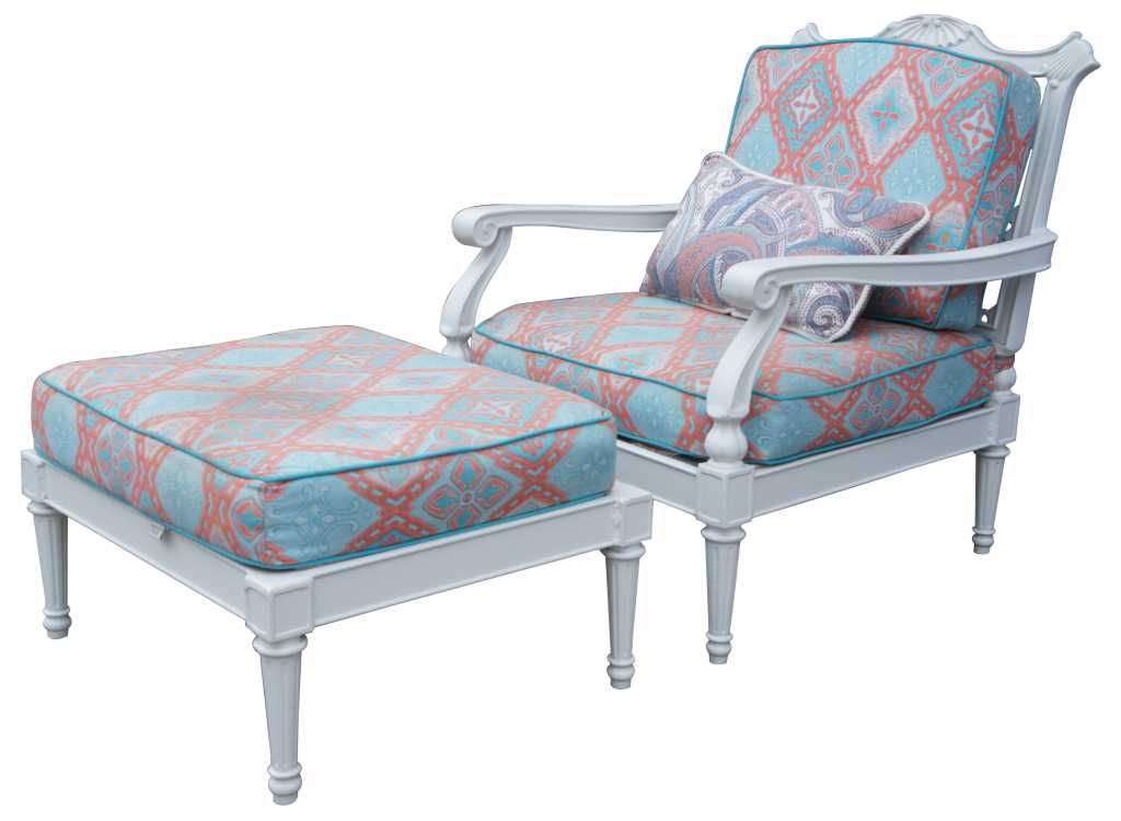 Inspired by neoclassical French interiors, the Glen Isle Aluminum White Lounge Chair features an extraordinary level of detail that is rarely, if ever found in outdoor furniture collection. The aluminum frame is expertly cast in molds that are handcarved by master artisans. The crisp white powdercoated finish is hand-applied in multiple steps. Comfortable, notched cushions are encased in premium 100% solution-dyed fabrics.