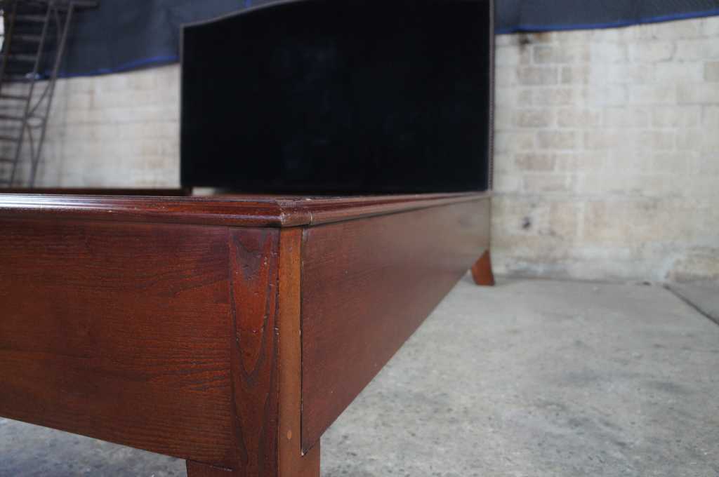 The Chelsea bed by Hickory Chair Co was designed by Thomas O'Brian. , Contemporary, oak frame, Black velvet upholstery with steel nailhead trim, and platform style footboard