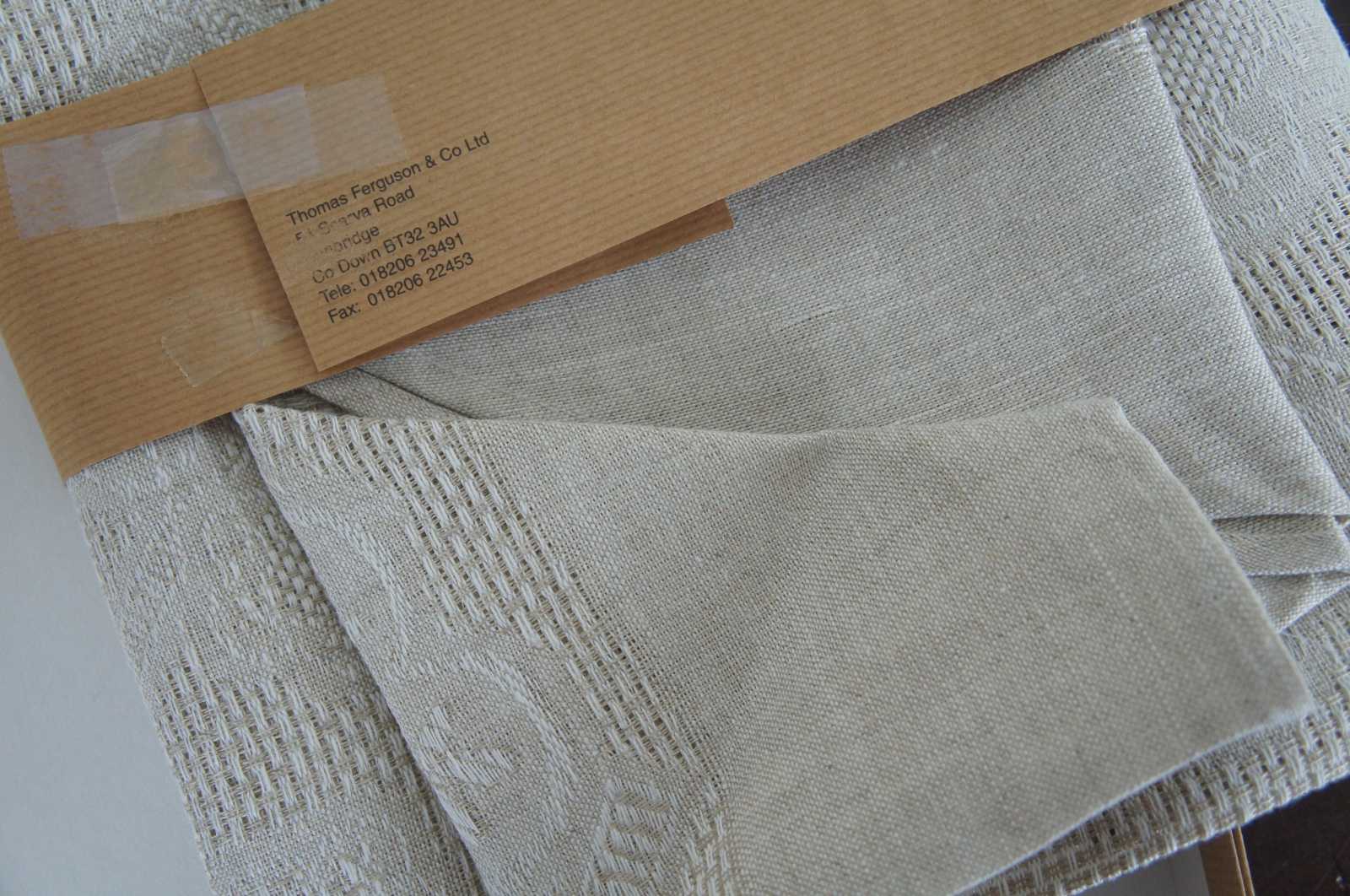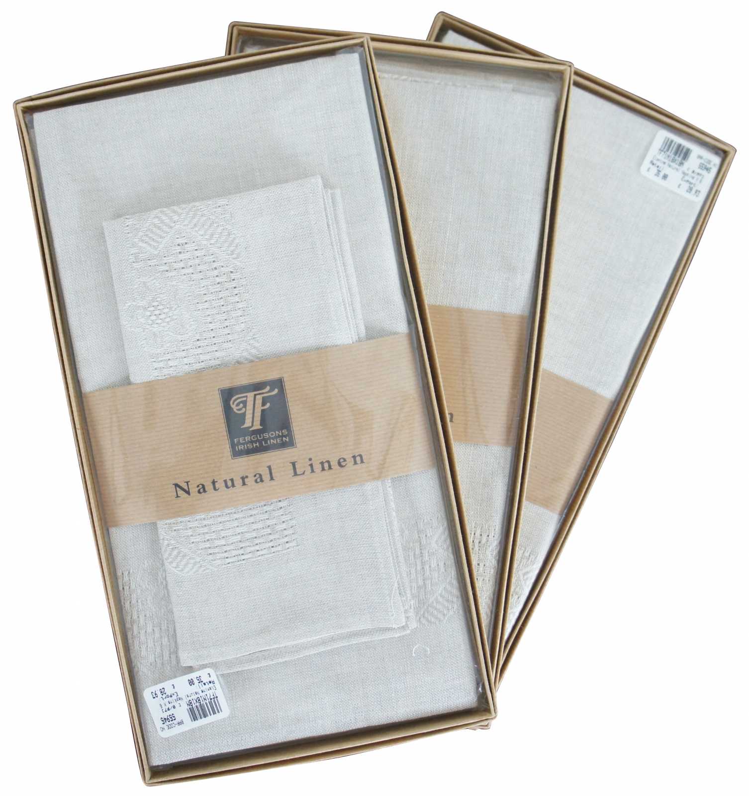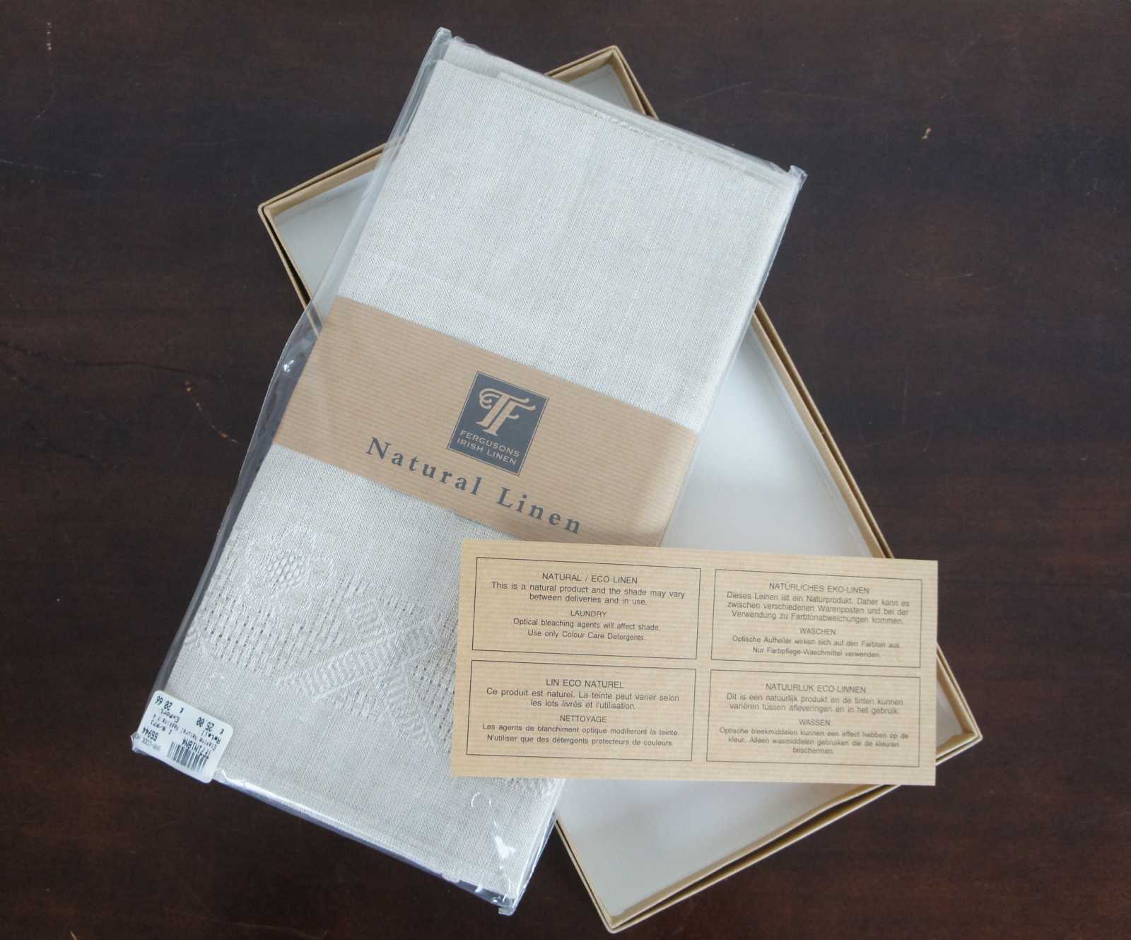 *New, unopened. Fergusons Irish Linen Set, includes 16 napkins and a tablecloth.
