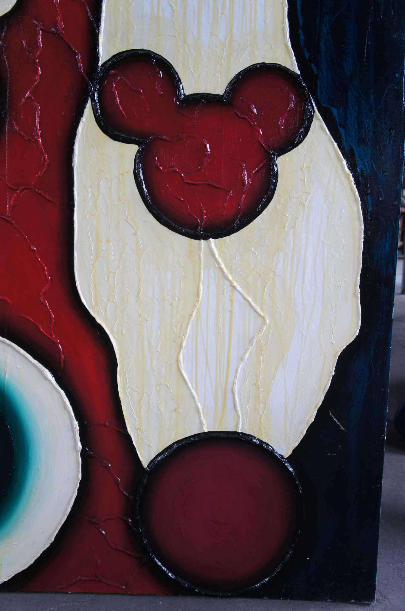 Matthew Weinstein's early works throughout the 1990s focused on gestural abstraction, cartoon drawings like Mickey Mouse, photographic-based imagery of ghostly images, and a fascination with blood, death, skulls and bones.