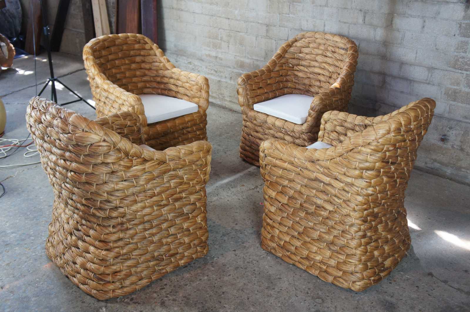 2 Ralph Lauren Joshua Tree Chairs. Full of hearty texture and visual appeal, these cabana-style armchairs are crafted with natural lampakanay and fitted with a plush cushion upholstered in a white linen.