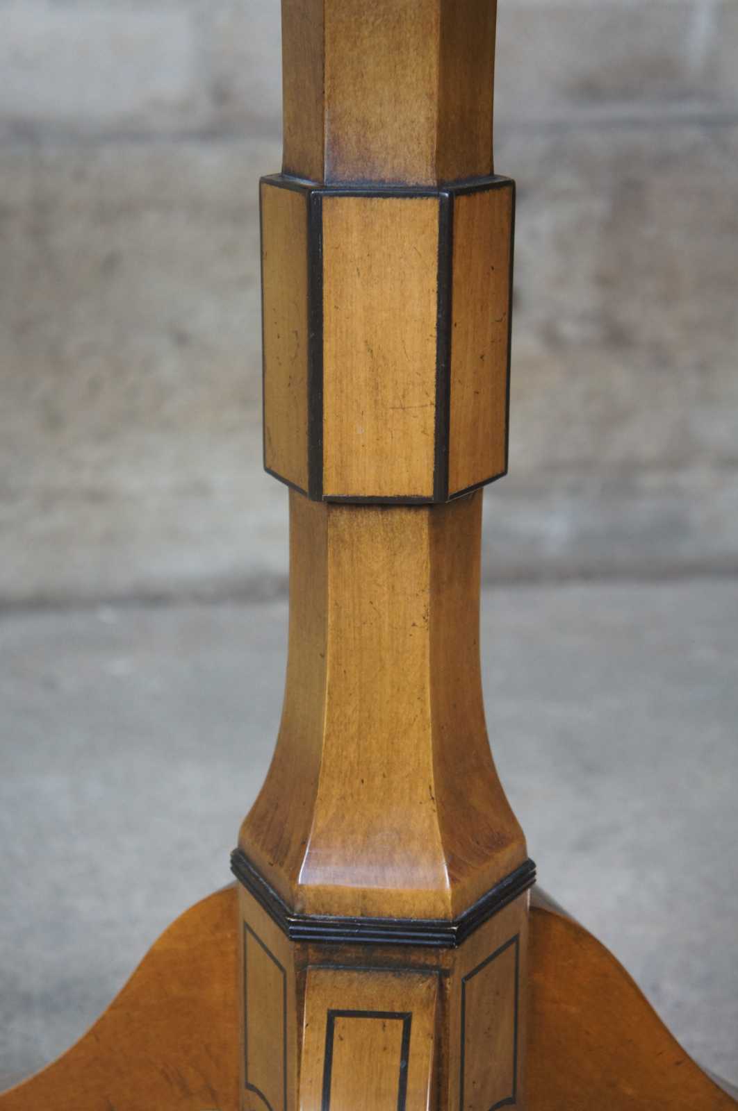 baluster-shaped pillar inlaid with ebonized stringing supports the