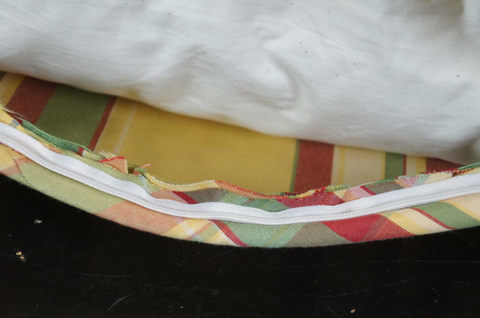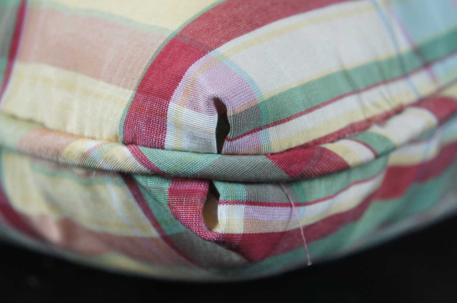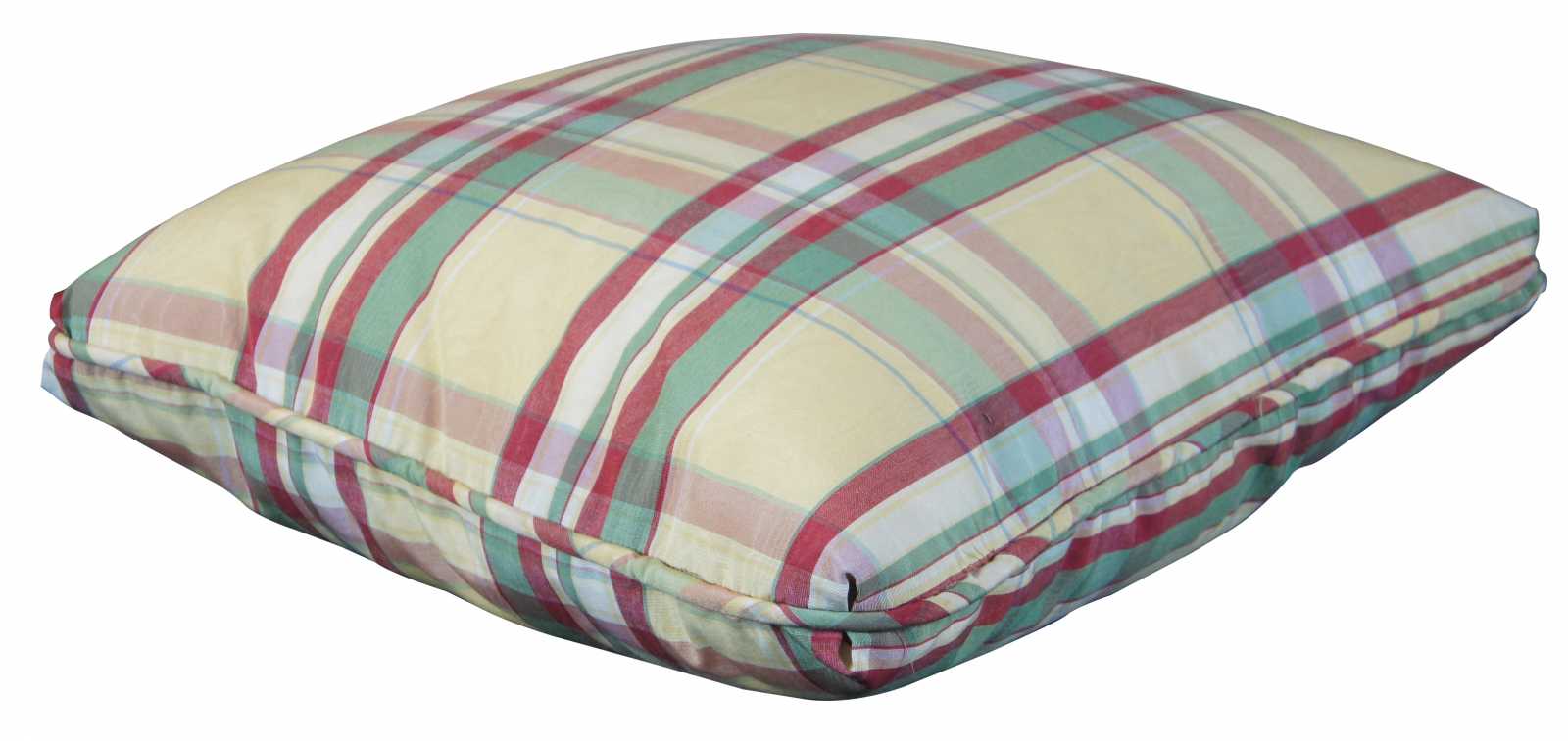 Down filled pillow with yellow plaid Ralph Lauren fabric in silk.