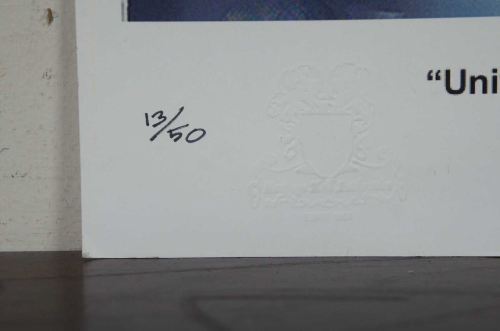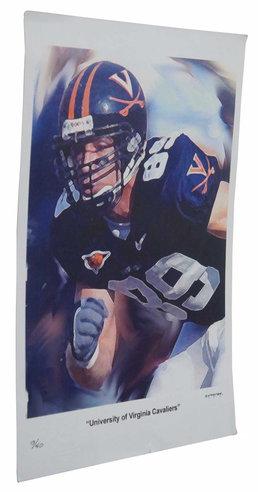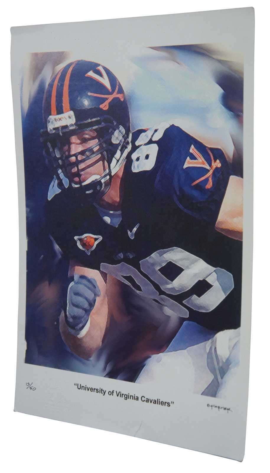 University of Virginia Cavaliers College Football Print. Go Musketeers! Watermarked at base. Signed E Farmer. Edition 13 of 50.