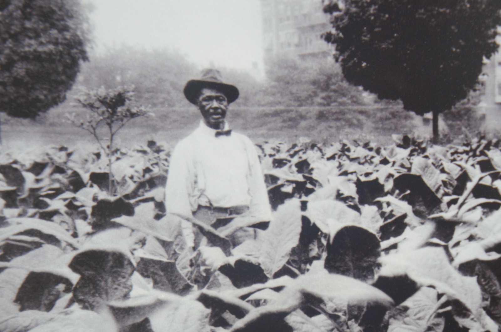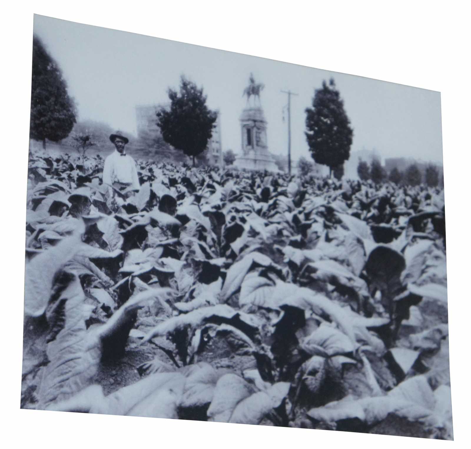 Dementi Studios Photograph of Lee Monument in Virginia. Titled Tobacco on Monument.