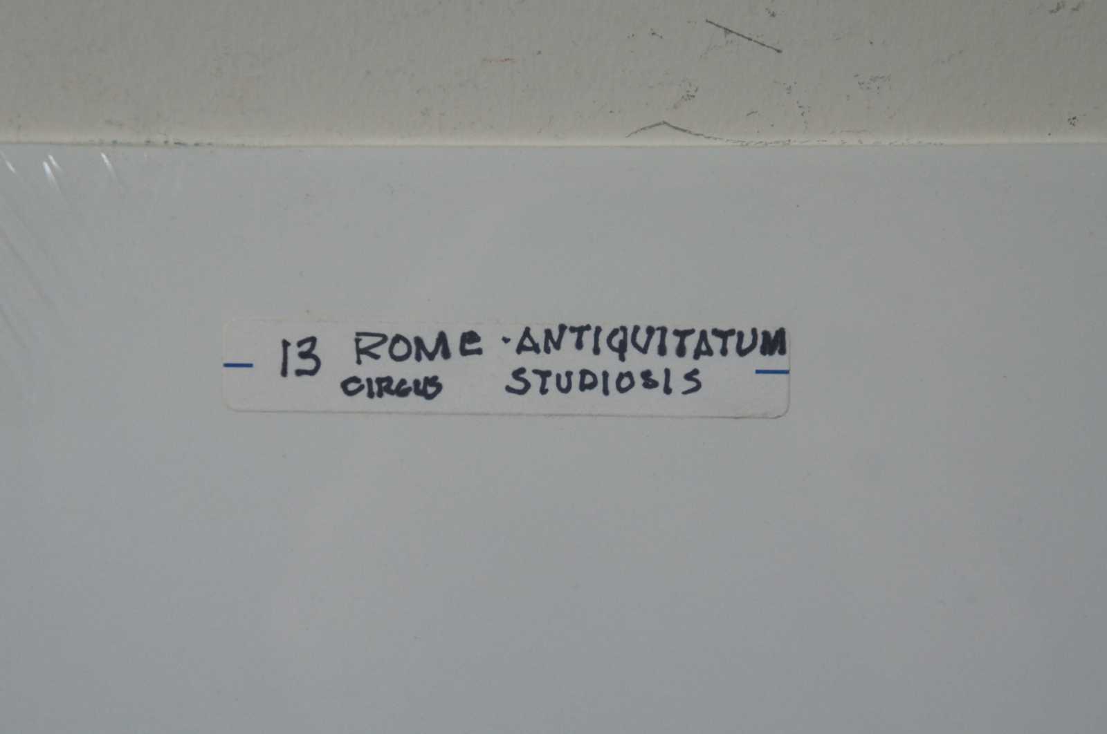 Antoine Lafréry (also known by the Italian name Antonio Lafreri) was a French printseller and publisher, and possibly also an engraver, who moved to Italy and was active in Rome from around 1540 until his death in 1577. His firm published maps and a wide range of prints: ancient and modern Rome, portraits, ornament and mythological, historical and religious subjects. He also bought and sold drawings, coins and medals. Among Lafréry’s publications were two architectural treatises and several sets of ornament prints, including Speculum Romanae Magnificentiae (c. 1540-c.1565). According to the subtitle of Speculum, it had the most accurately drawn representations of nearly all the extant monuments of the City of Rome; in the 1570s, the Lafréry catalogue listed some 500 subjects. Engraving depicting chariot racers in the Circus Maximus, after a painting by the eminent Italian architect and antiquarian Pirro Ligorio. According to the caption, the artist intended to show this Roman stadium as it appeared in antiquity. This engraving was originally published by Michele Tramezzino in 1553, and bears his monogram. Architectural, Italy, Speculum Romanae, Circus Maximus, Rome, Antique Print.
