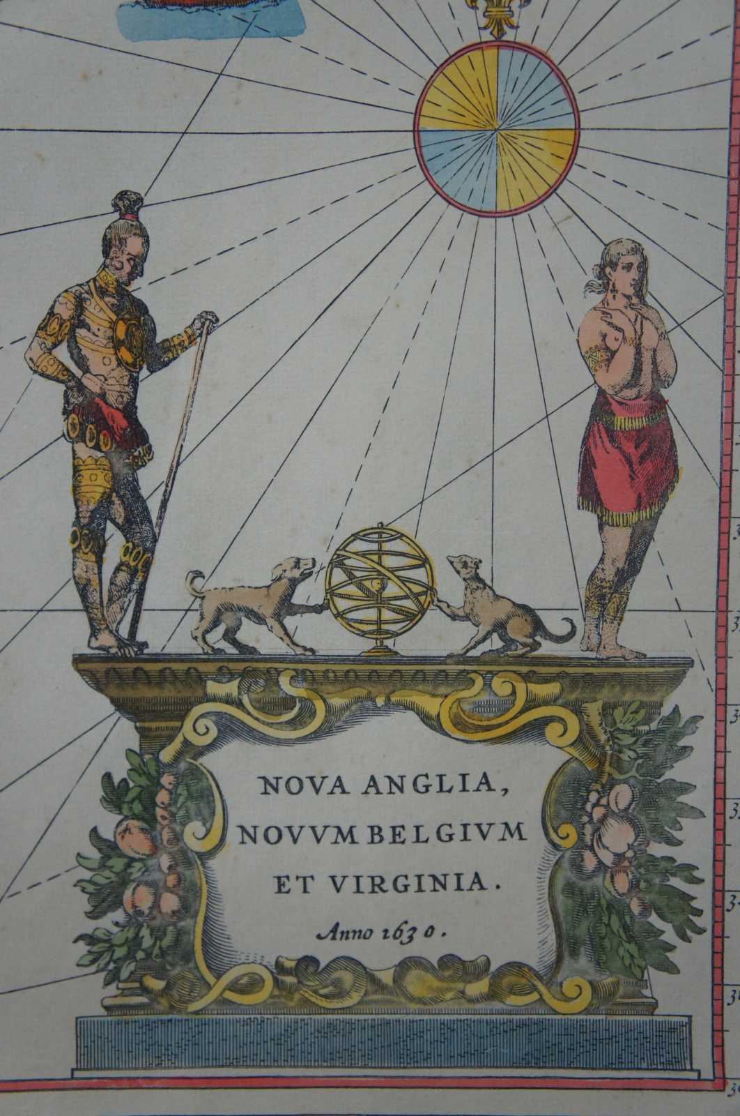 This map illustrates an important shift in the broader European culture. Wytfliet’s speculations, often inaccurate and certainly incomplete, reflect the long tradition of rhetorical values. De Laet provides for the practical Dutch concrete accuracy and truth as experience. This map is the first accurate depiction of the East Coast. It is the first printed map of New Netherland and the first to print the place names of New Amsterdam and Manhattan. The latter is accurately depicted as an island.