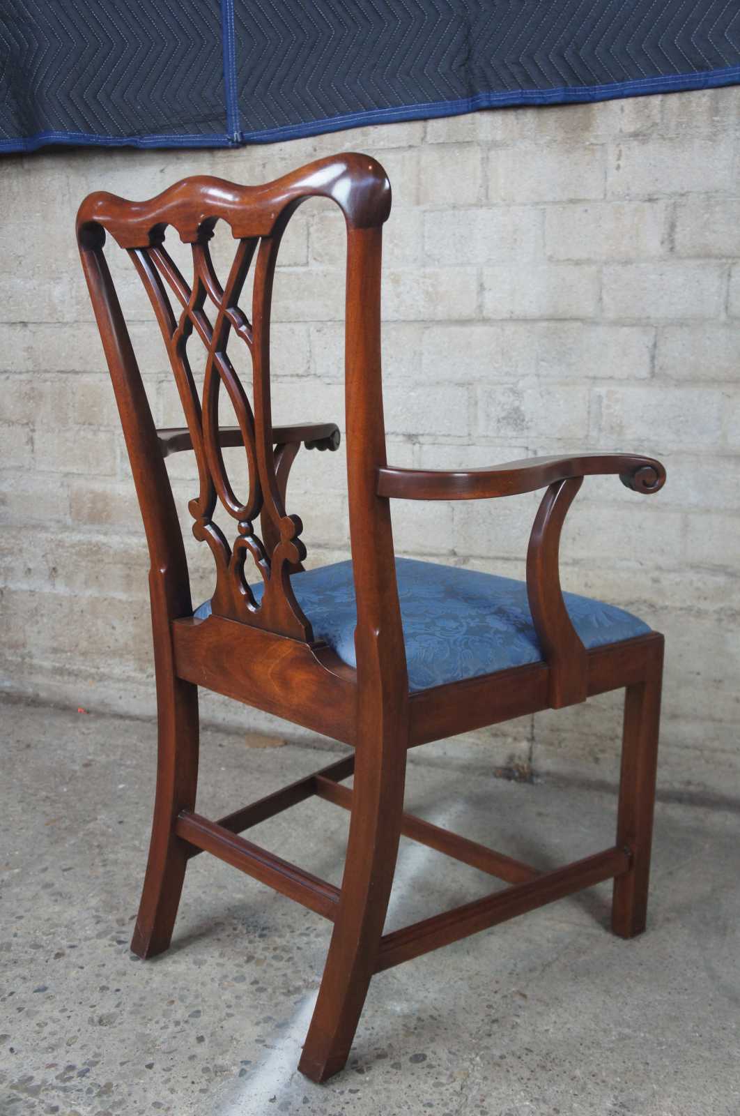 Carved crest rail and carved pierced interlaced back splat. Slightly incurved double beaded shaped back post.