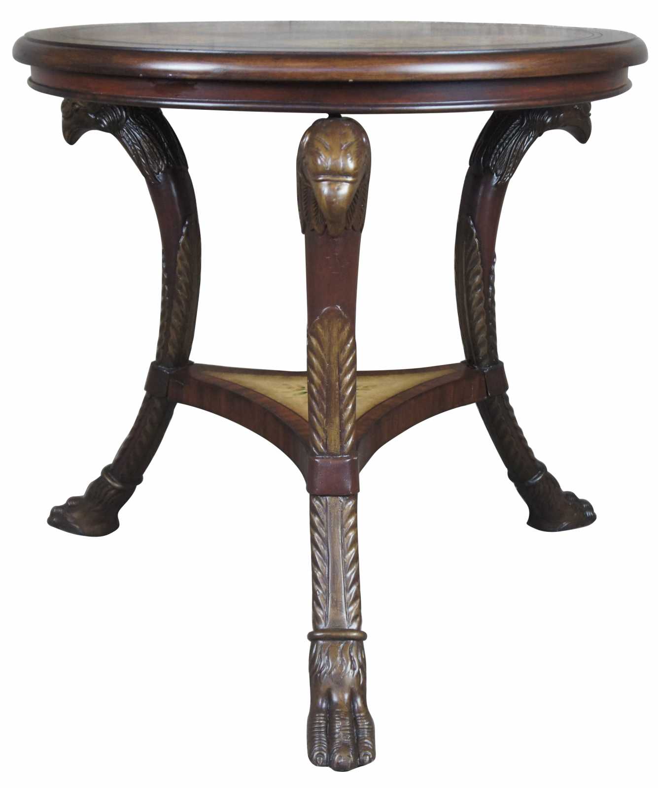 Round figural eagle head and paw foot cherry finish table by Powell. Circa 2009.