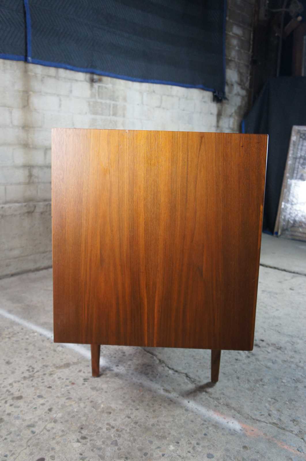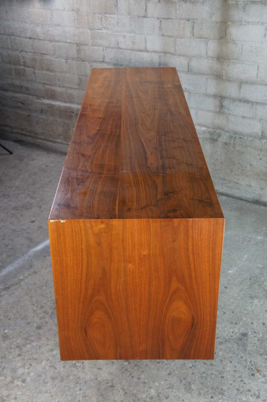 Iconic Mid Century Modern Drexel Declaration buffet or credenza by Kipp Stewart and Stewart McDougall, circa 1955. A rectangular form made from walnut with four central dovetailed drawers flanked by outer cabinets with illuminated interior. M 851-136