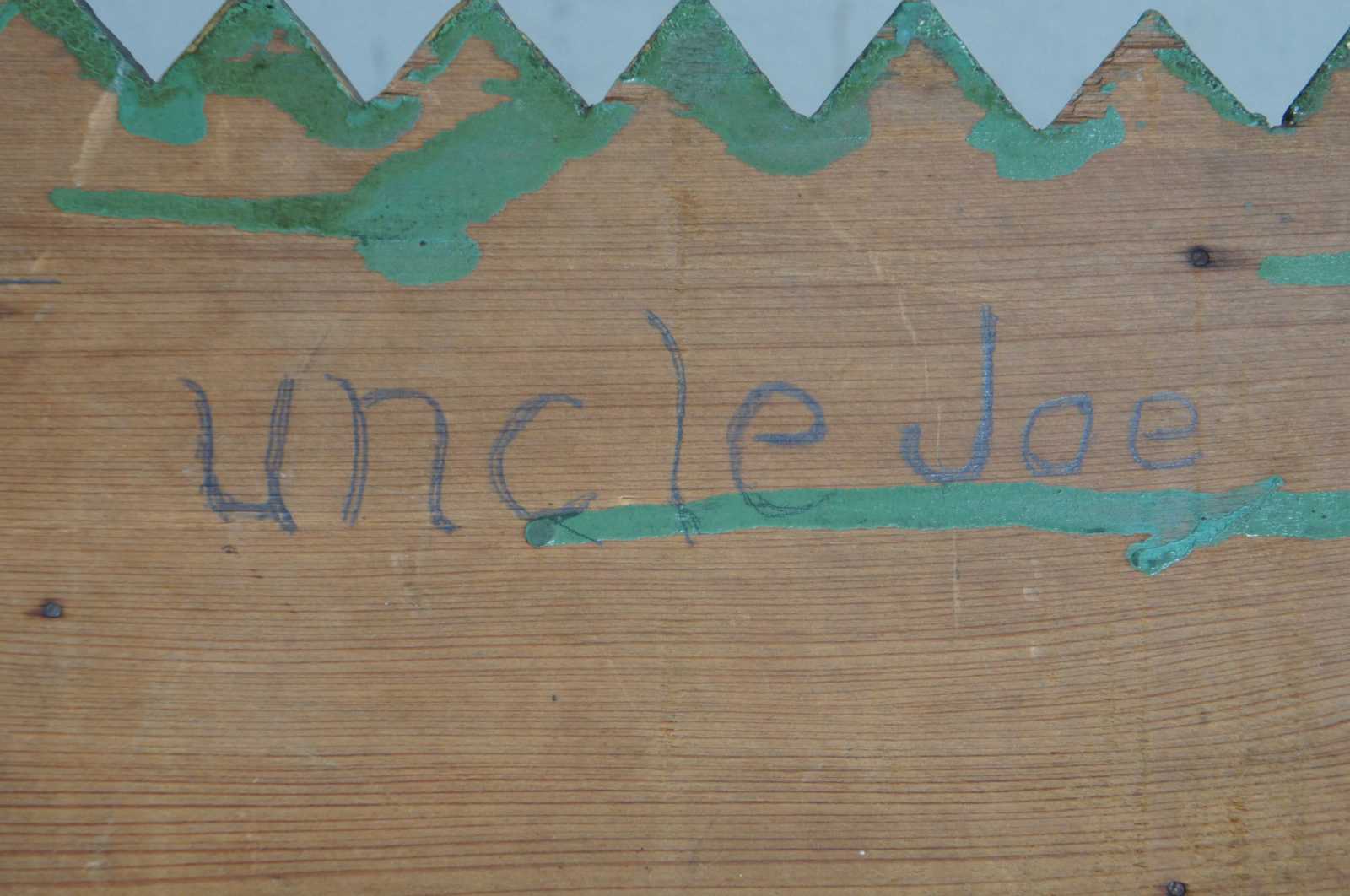 Vintage arts and crafts early american style wall shelf. Signed uncle Joe on the backside.
