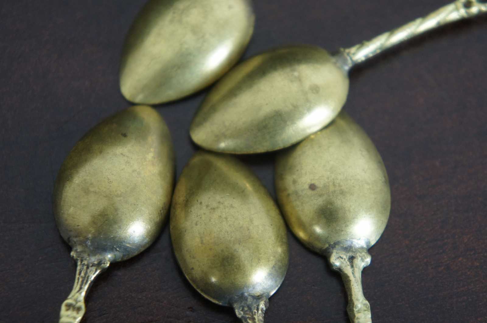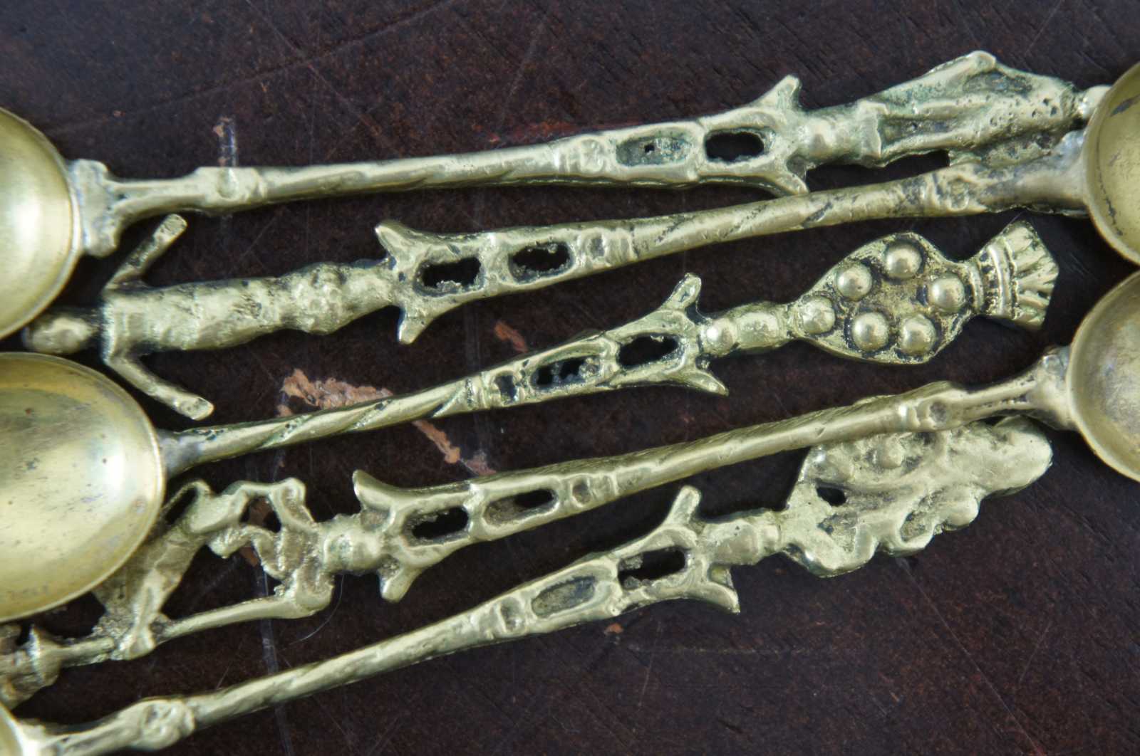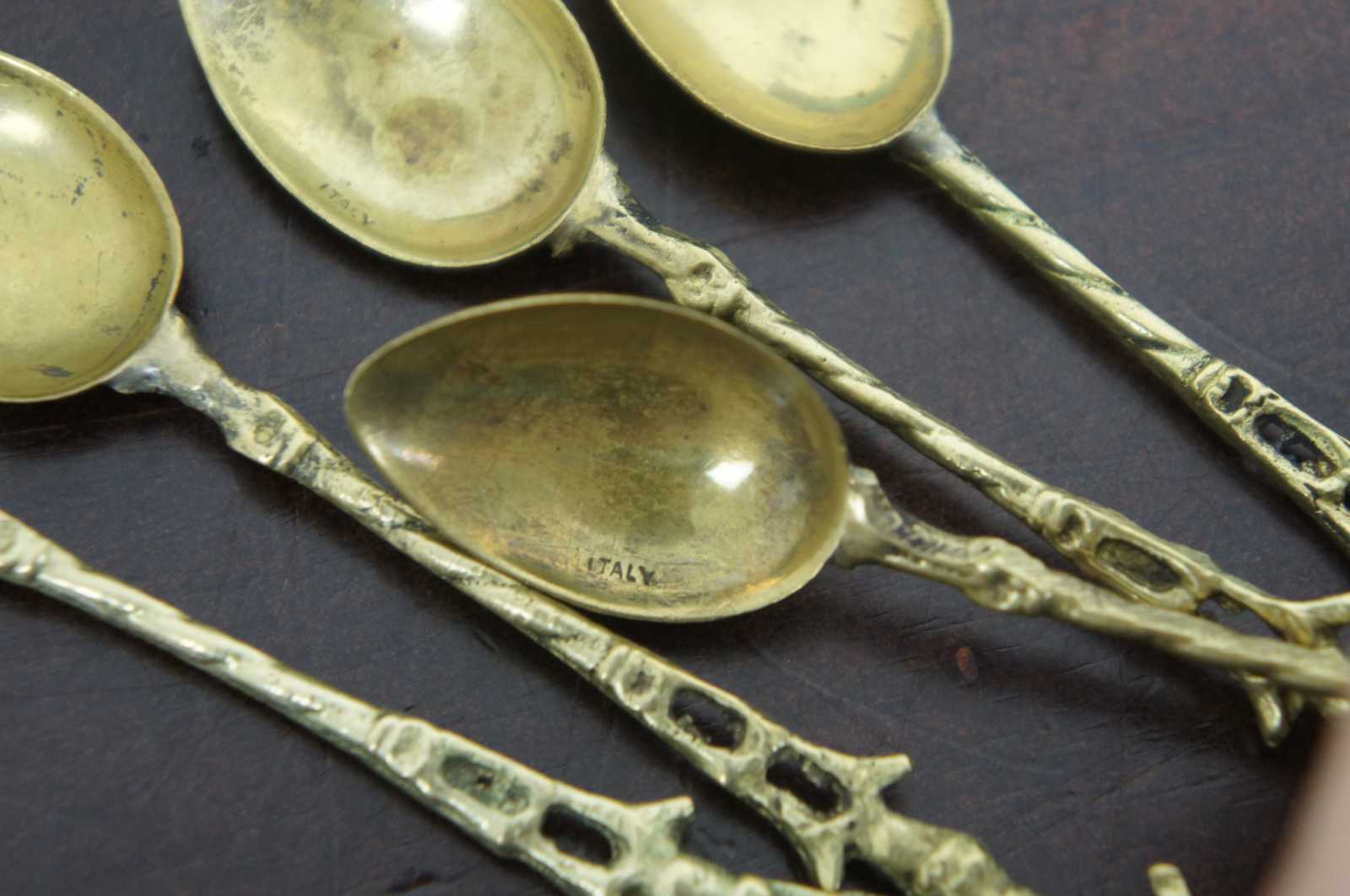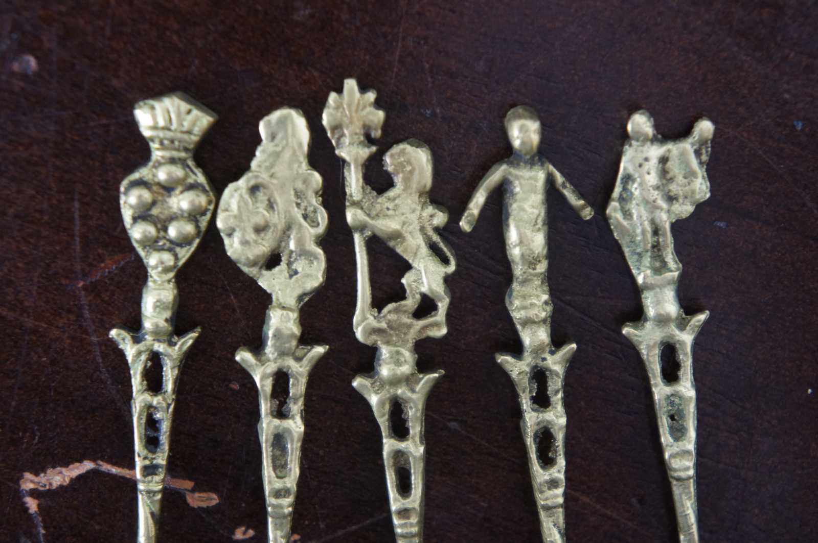 Set of 5 Italian Brass Florentine Souvenir Tea Spoons Charms Italy 4"