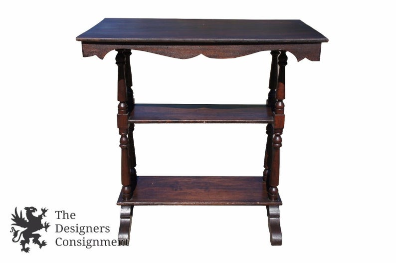Beautiful Vintage 3 Tier Shelved Pine Living Room Console Table With Turned Legs