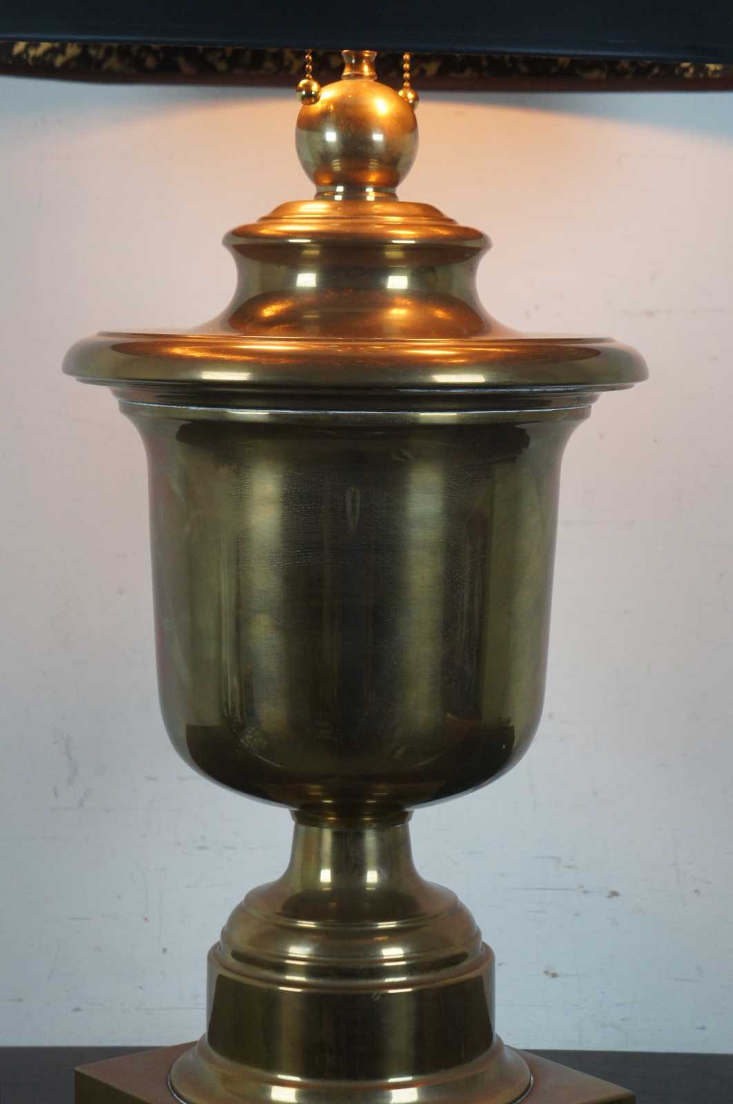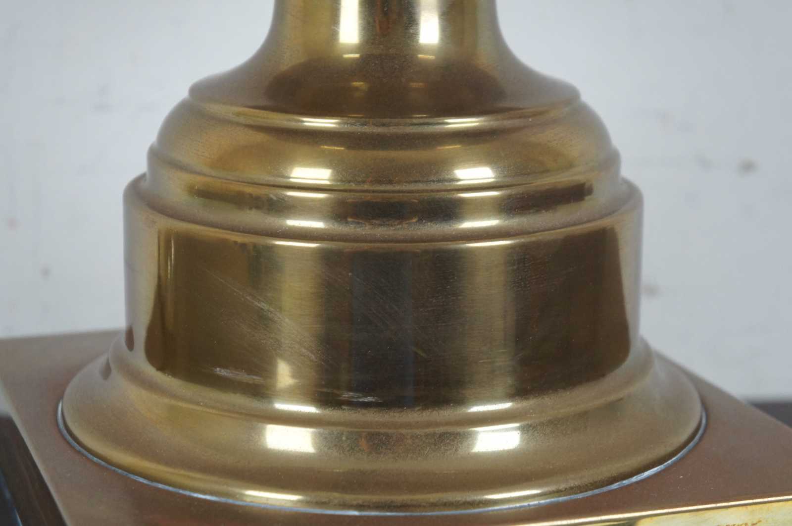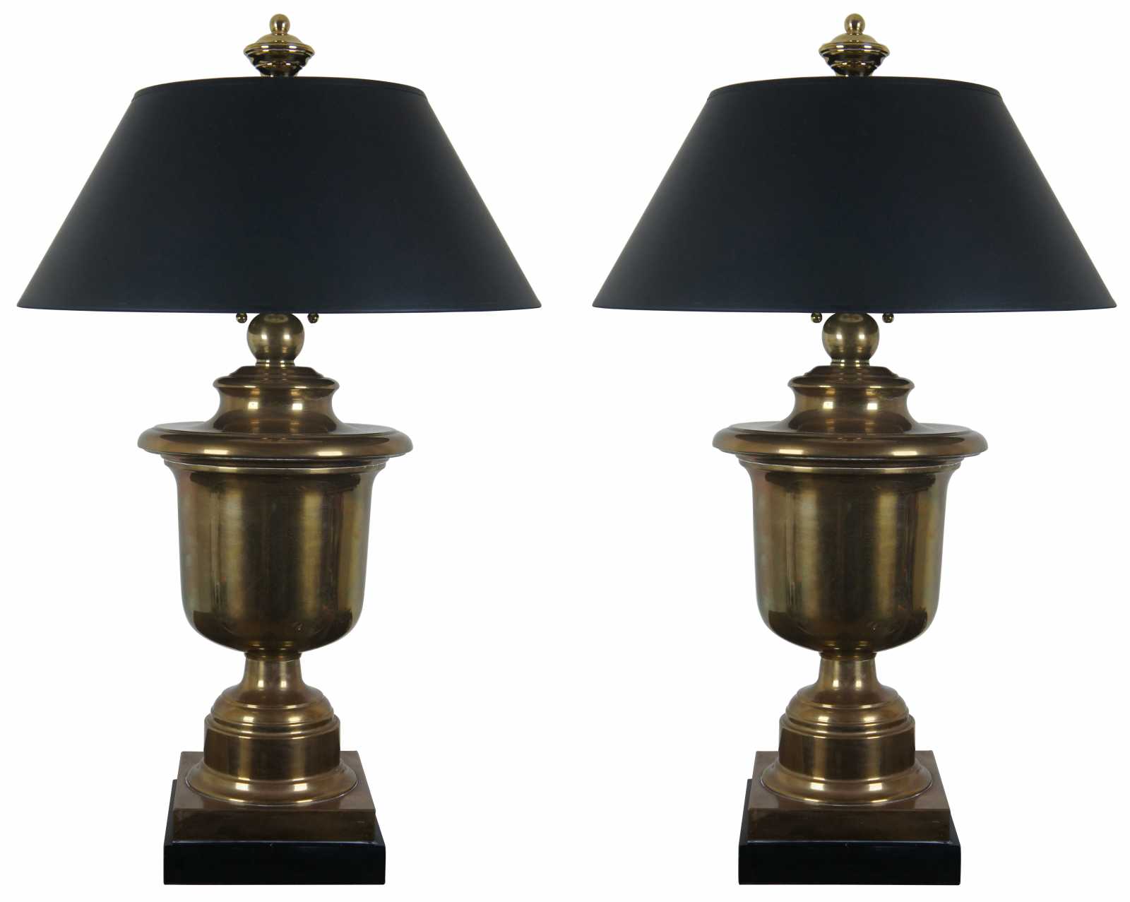 A classical yet regal design by Chapman. Made from brass with black tapered shades and foiled underside. A great addition to any setting. Prodcut # X5489A.