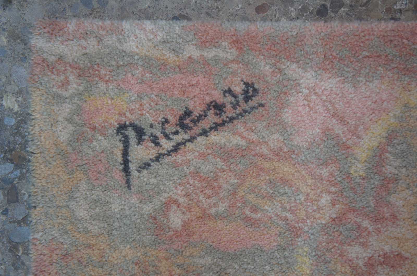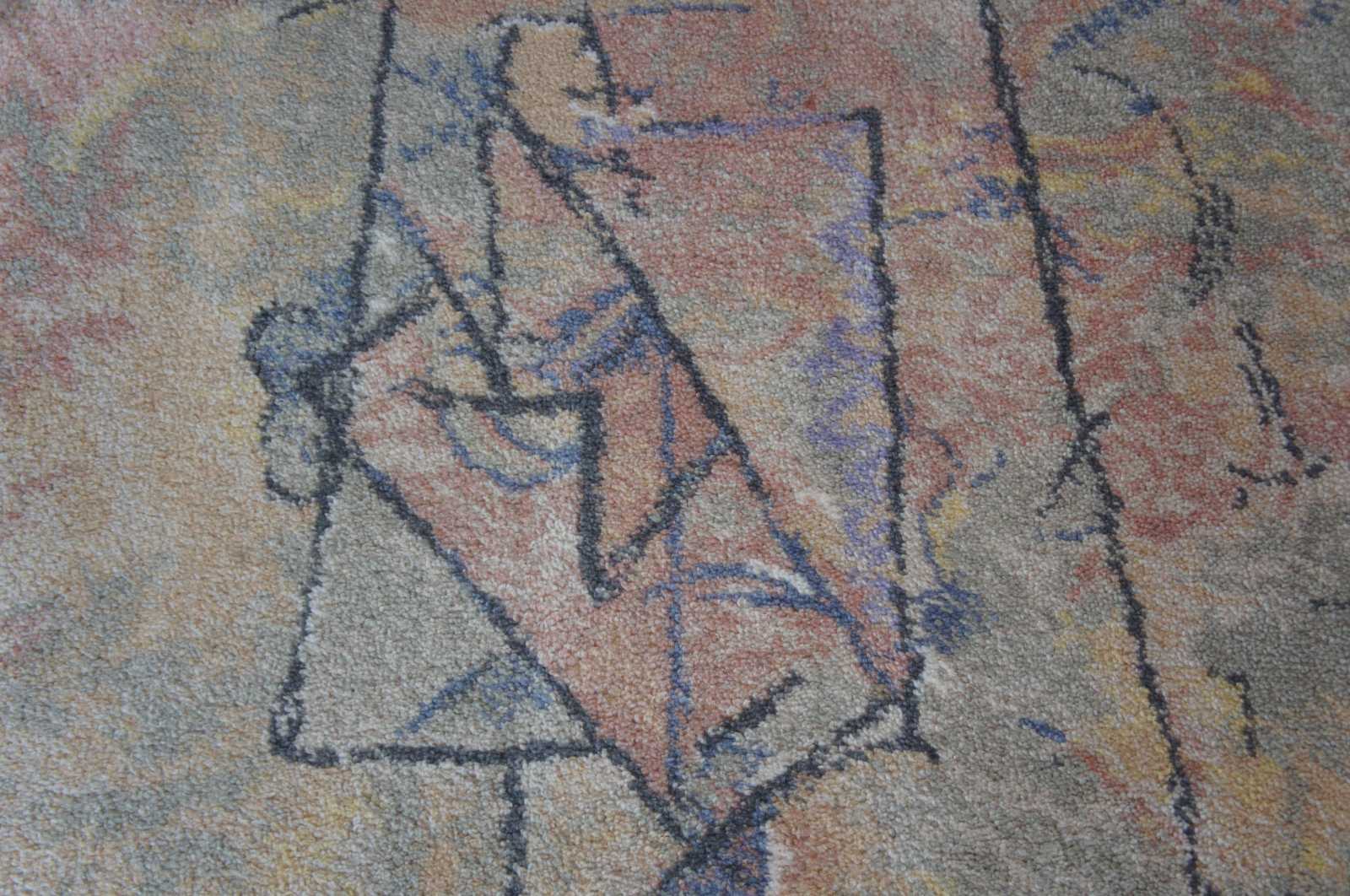 A very rare rug from the 20th century masters collection by the Scandinavian Company EGE. The Art Line Collection with motives from Pablo Picasso was commissioned by his daughter. The collection was made in 1994 in a limited number of 600 pieces. Homage to Pablo Picassos "Woman with a Guitar" Circa 1910. The design number is 80576 / #511 of 600, made in Denmark. 4'7" x 6'7".