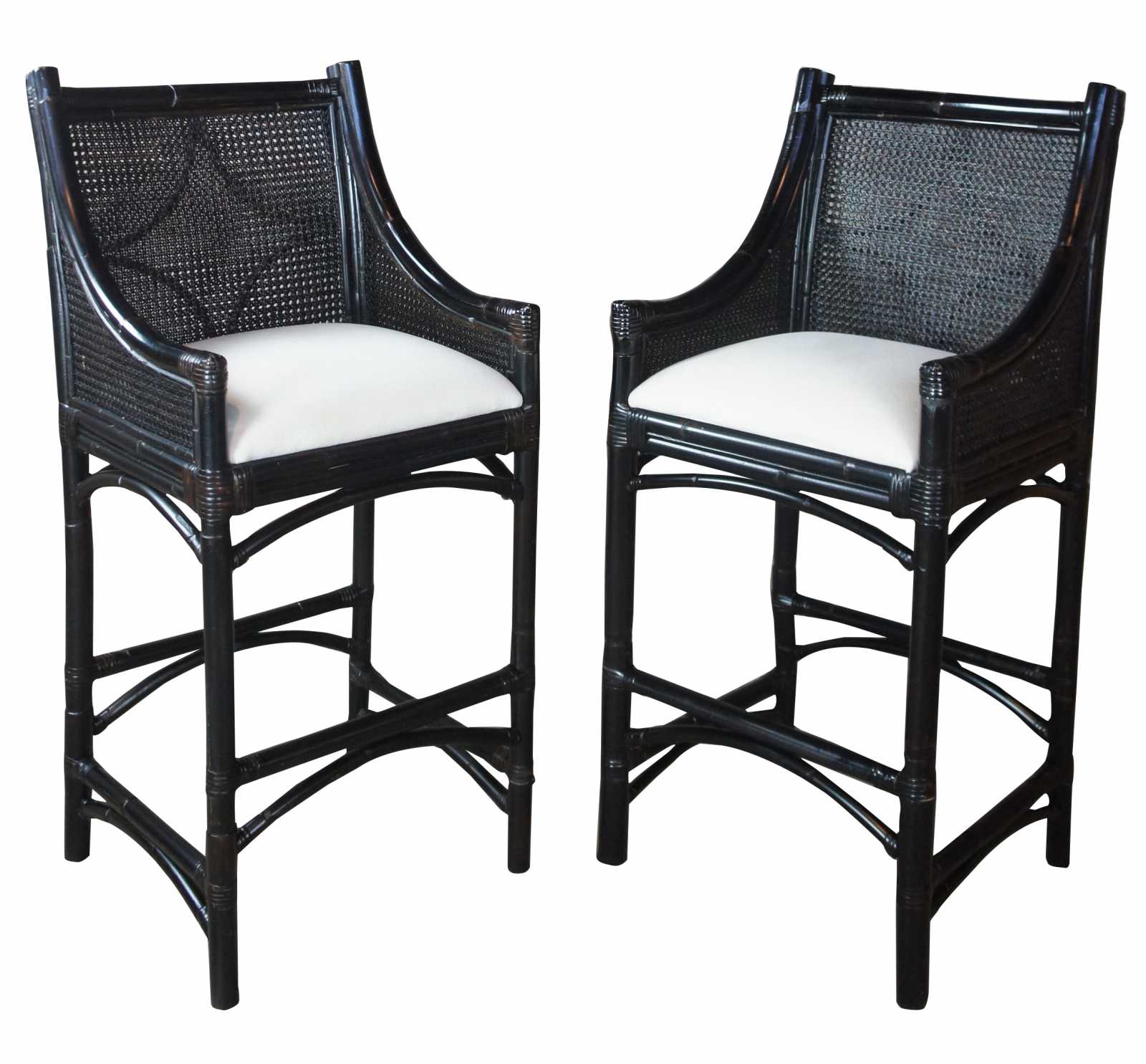 Subtle curves make these Bella Bar Stools just as comfortable as they are stylish. The sturdy frame is crafted of thick, hand carved pole rattan with tightly woven double caned back and arms, rattan-wrapped joints and protective metal heel guard.
