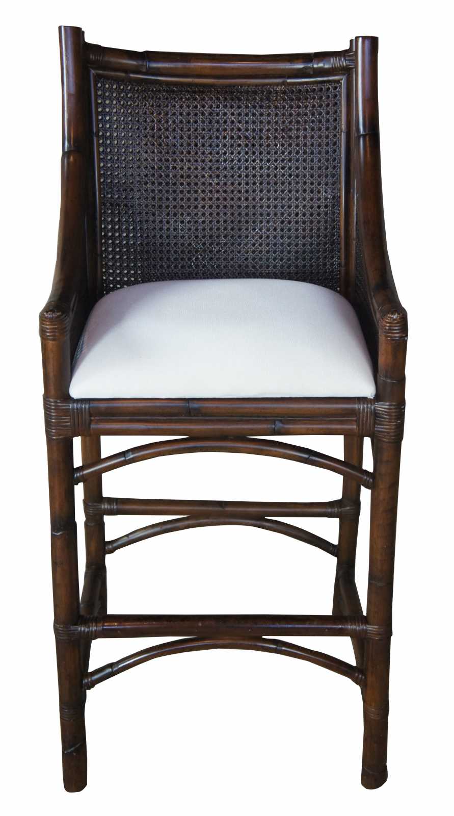 Subtle curves make the Bella Bar Stool just as comfortable as it is stylish. The sturdy frame is crafted of thick, hand carved pole rattan with tightly woven double caned back and arms, rattan-wrapped joints and protective metal heel guard. (Discounts available if you live close or can pickup)