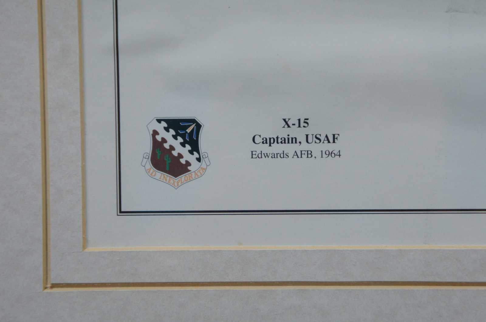 National Aviation Hall of Fame Print signed HOF for RET USAF Major General Joe Engle. Features the X-15 and Space Shuttle with certificate of authenticity. Framed, signed and numbered 13 of 500.