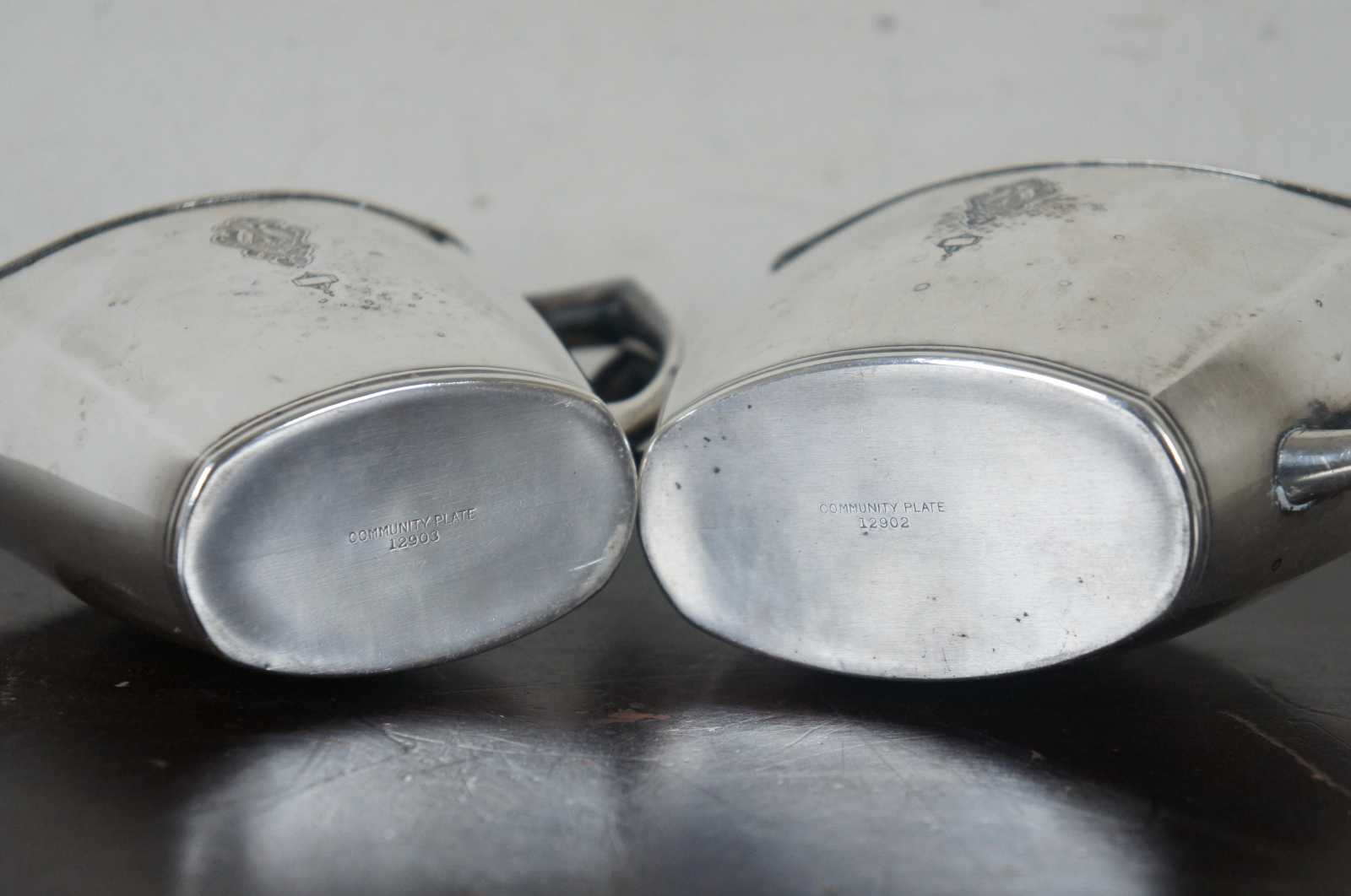 Oneida Community silver plated bird of paradise hollowware creamer and sugar bowl set.