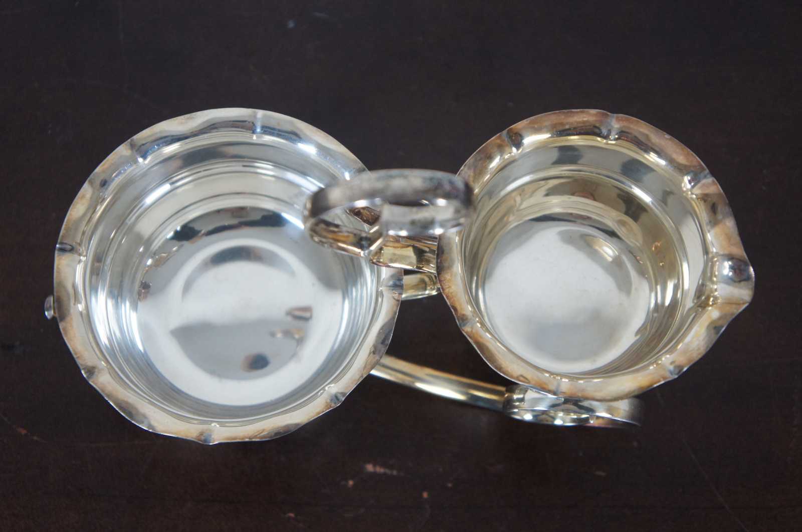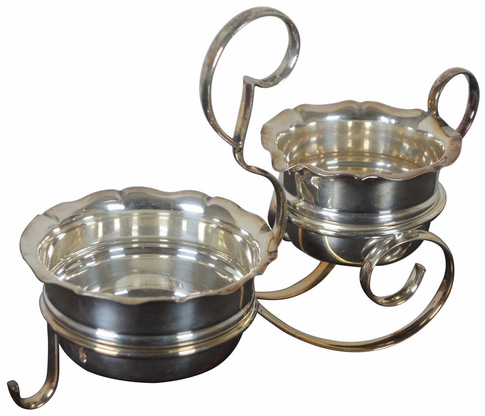 Buckingshire silver plated cream & sugar set with stand / caddy. Marked at base Buckingahire EPNS A1 Made in England L.L.S.