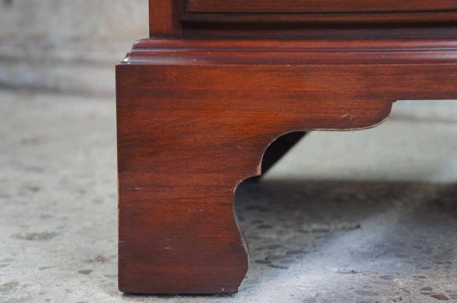 Henkel Harris Wild Black Cherry Princess Anne Lingerie or semainier chest, circa 1982. Features chippendale styling with brass hardware, block feet and felt lined jewelry tray insert. Finish #24.