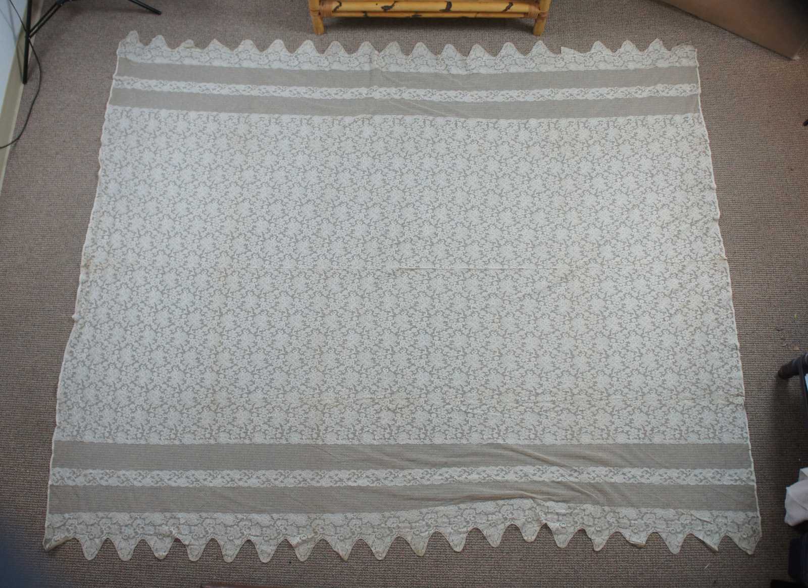 Very Good - Yellowing/discoloration from age; couple of minor pulls/holes to corner of lace/net tablecloths; see pictures