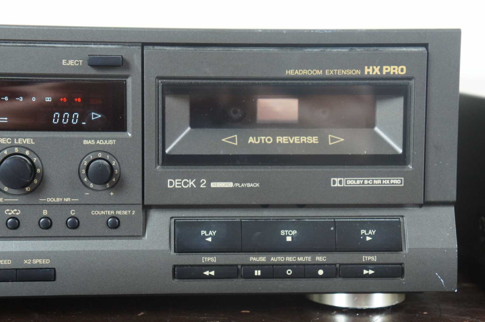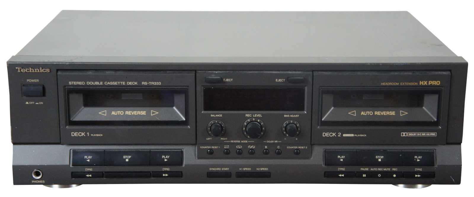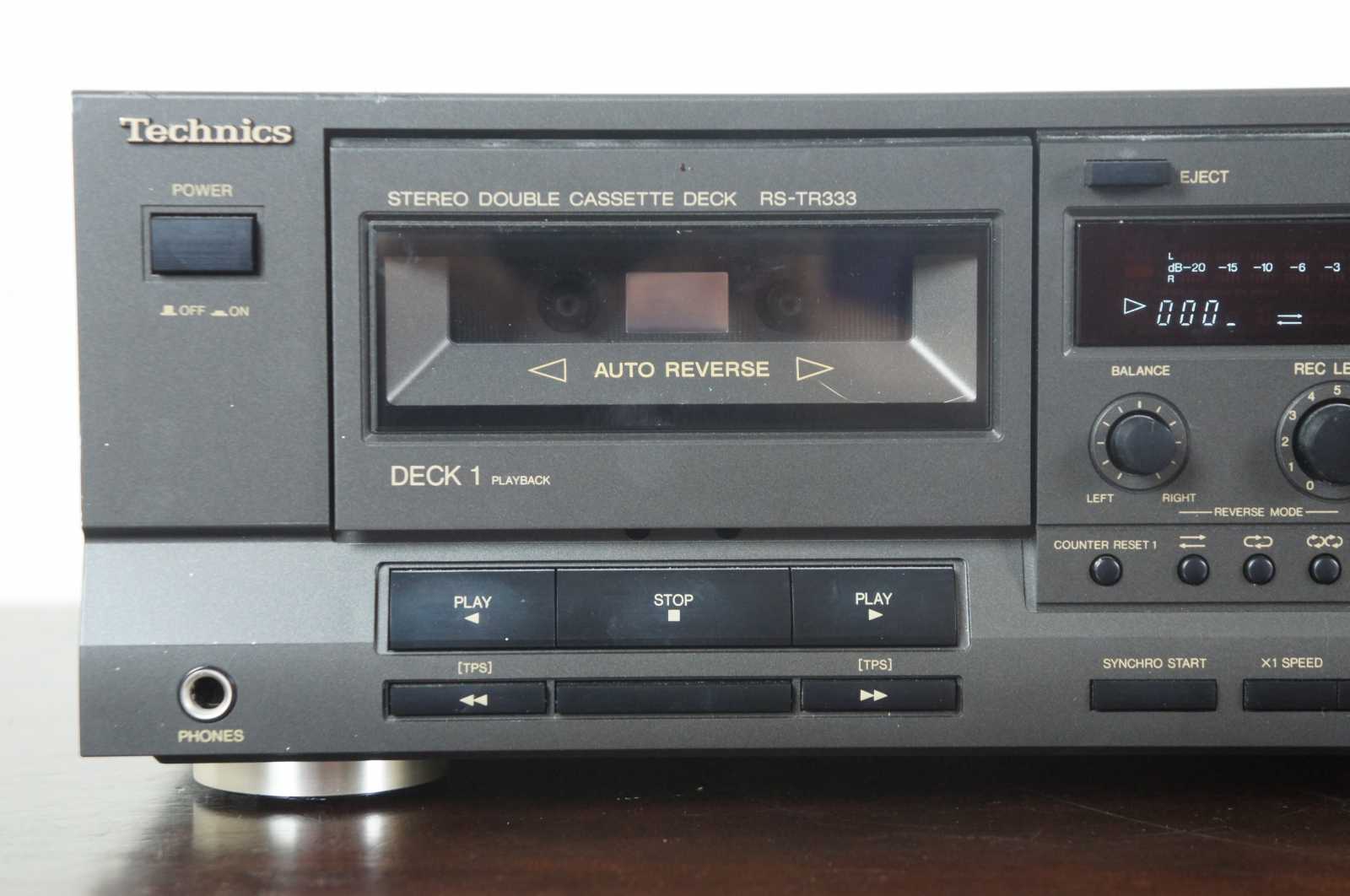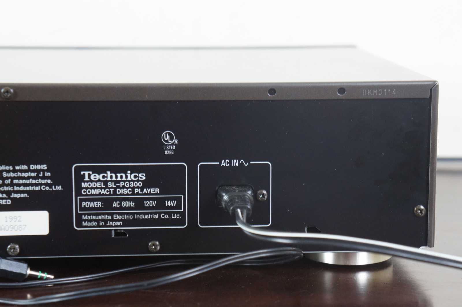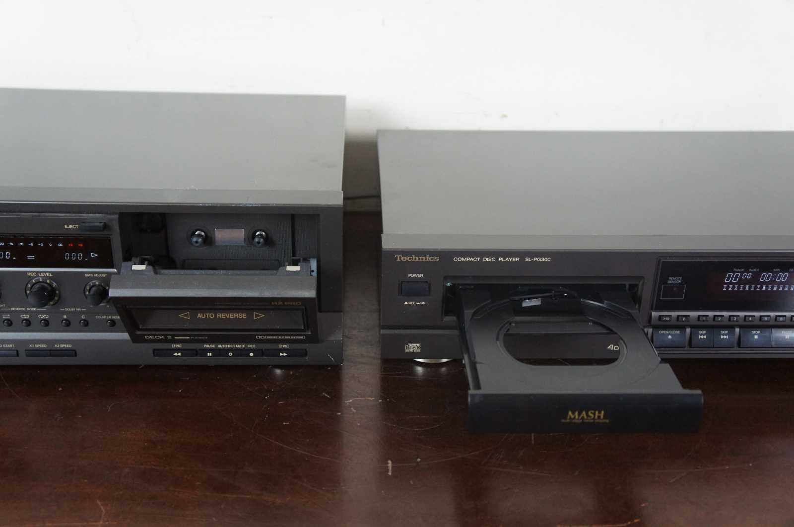 Early 1990s Technics CD (SL-PG300) and double cassette (RS-TR333) players with cords and remote.