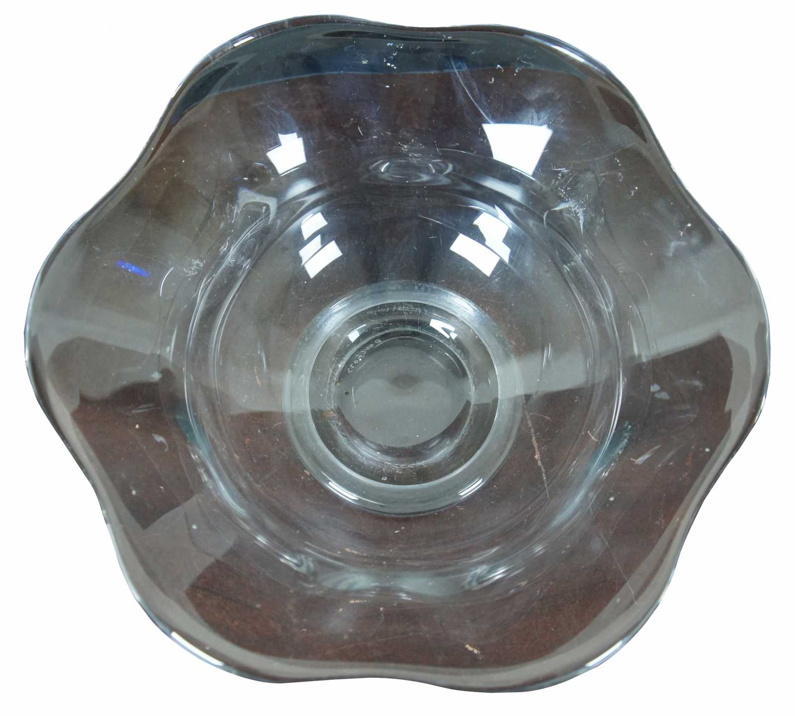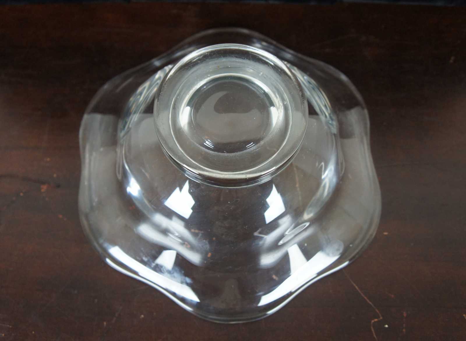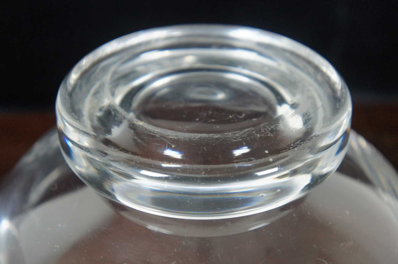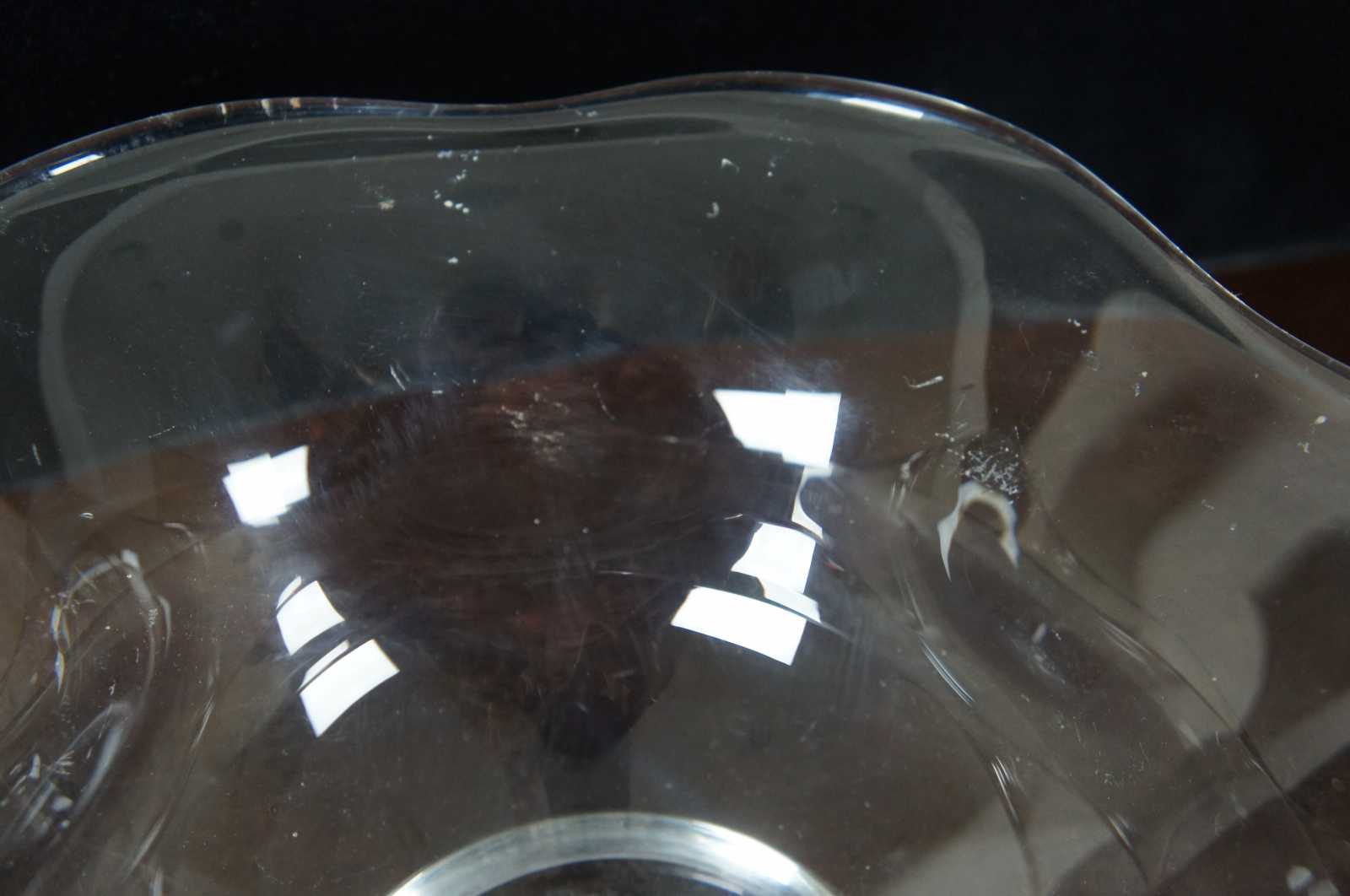 Vintage crystal bowl by Orrefors. Features a flared or ruffled rim / edge and footed base. Signed on base.