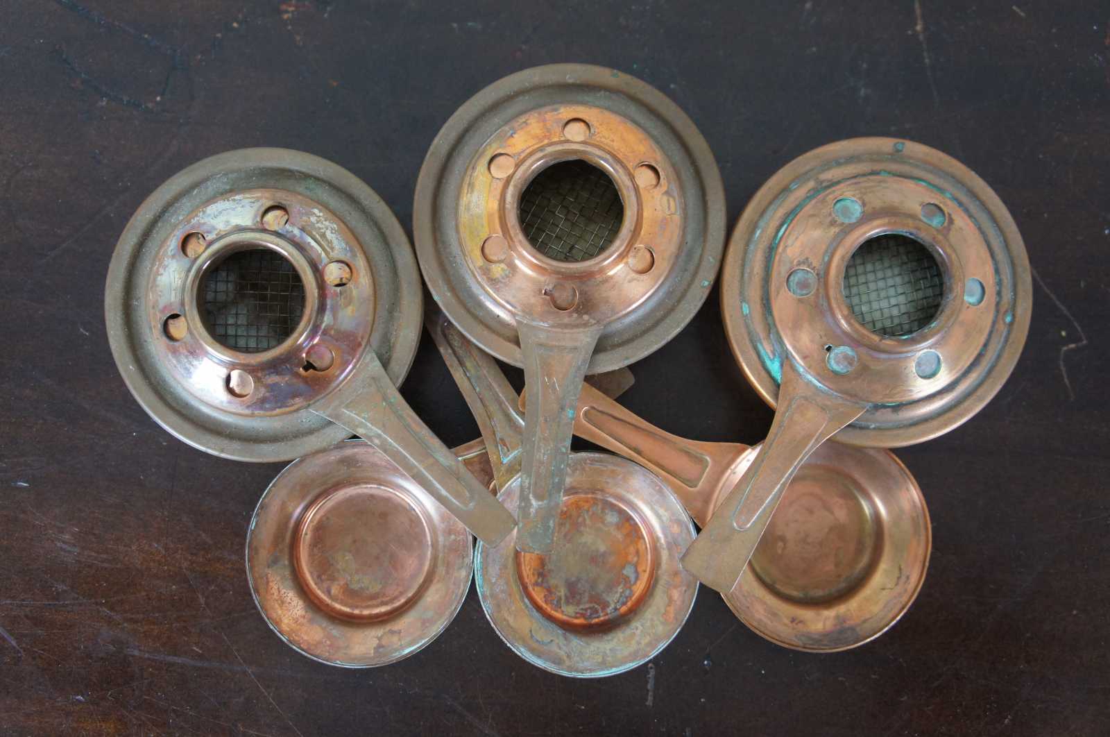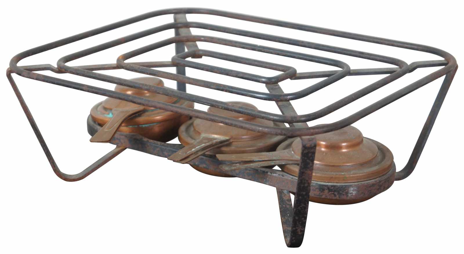 Vintage Iron chafing stand / warming dish / cook top with three copper burners.