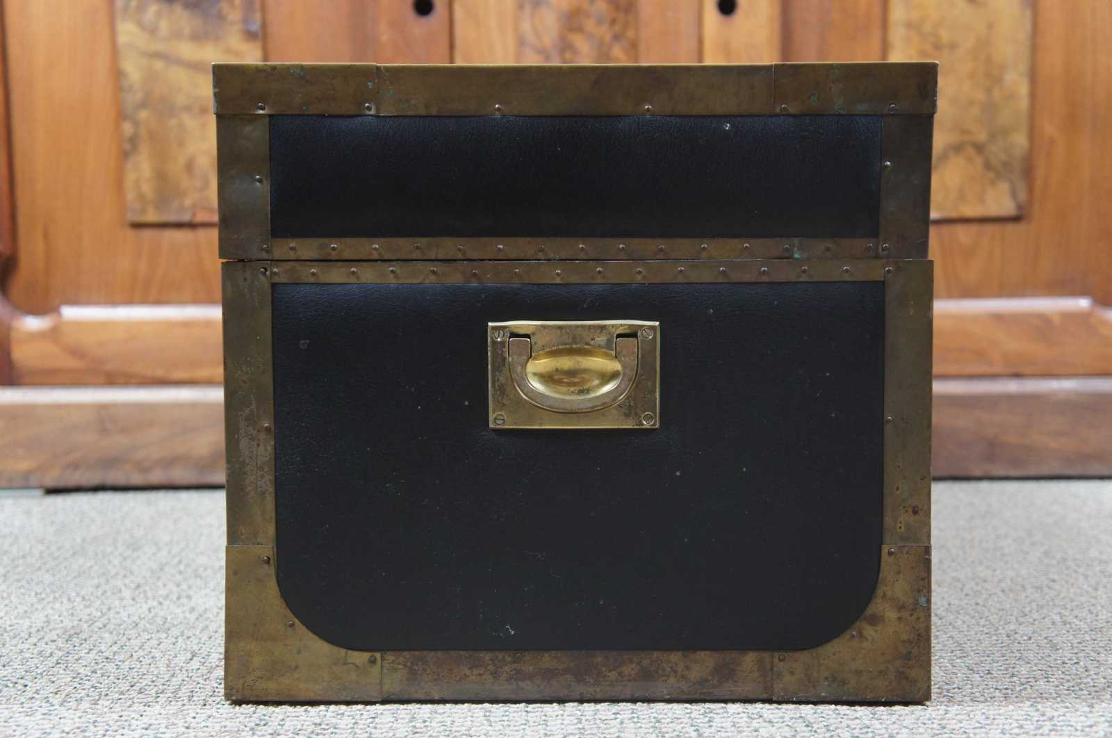 Early 20th century Chinese export camphor chest or trunk. Features a leather exterior trimmed in brass.