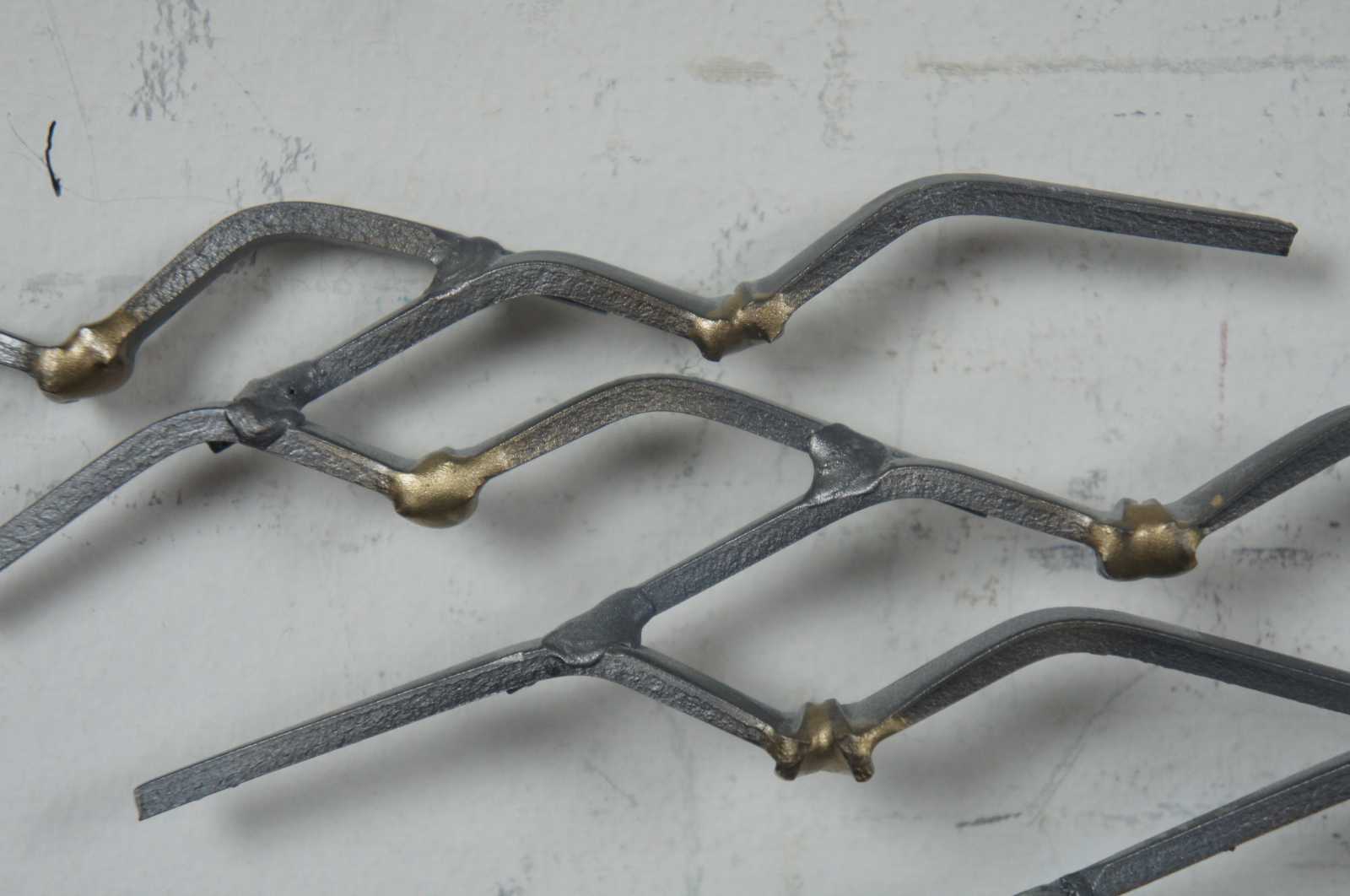 Ron Schmidt metal or iron scultpure. Features an iron outline of a flock of birds or seagulls in flight.