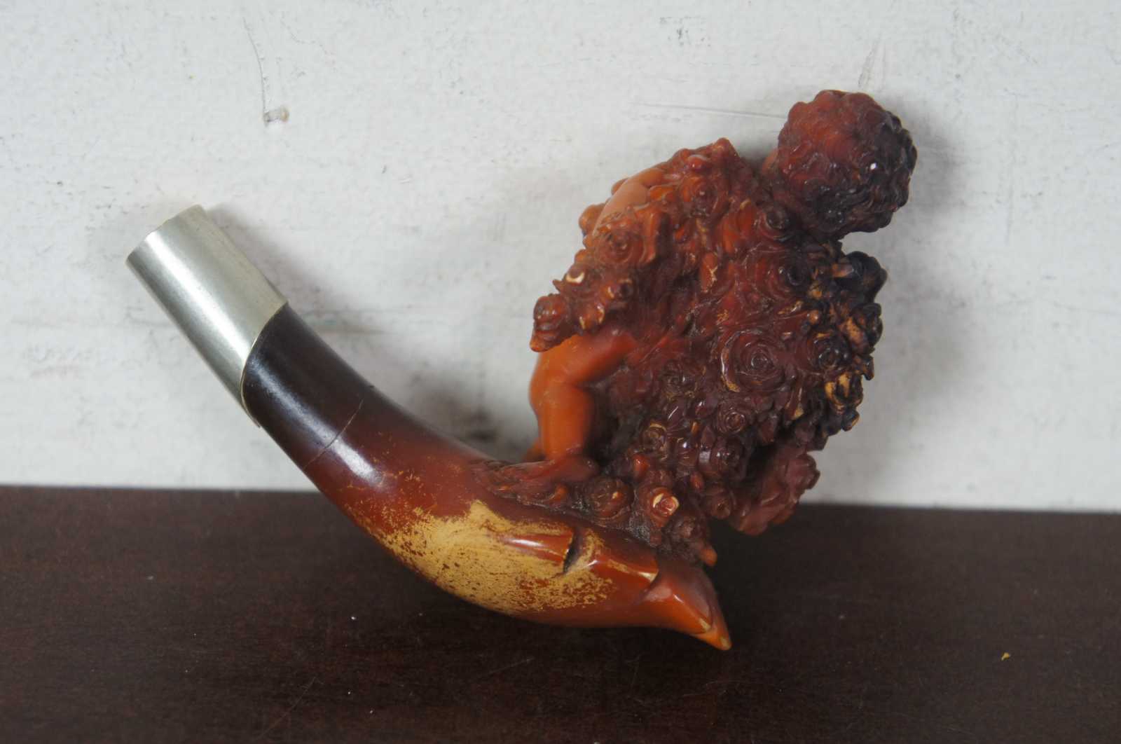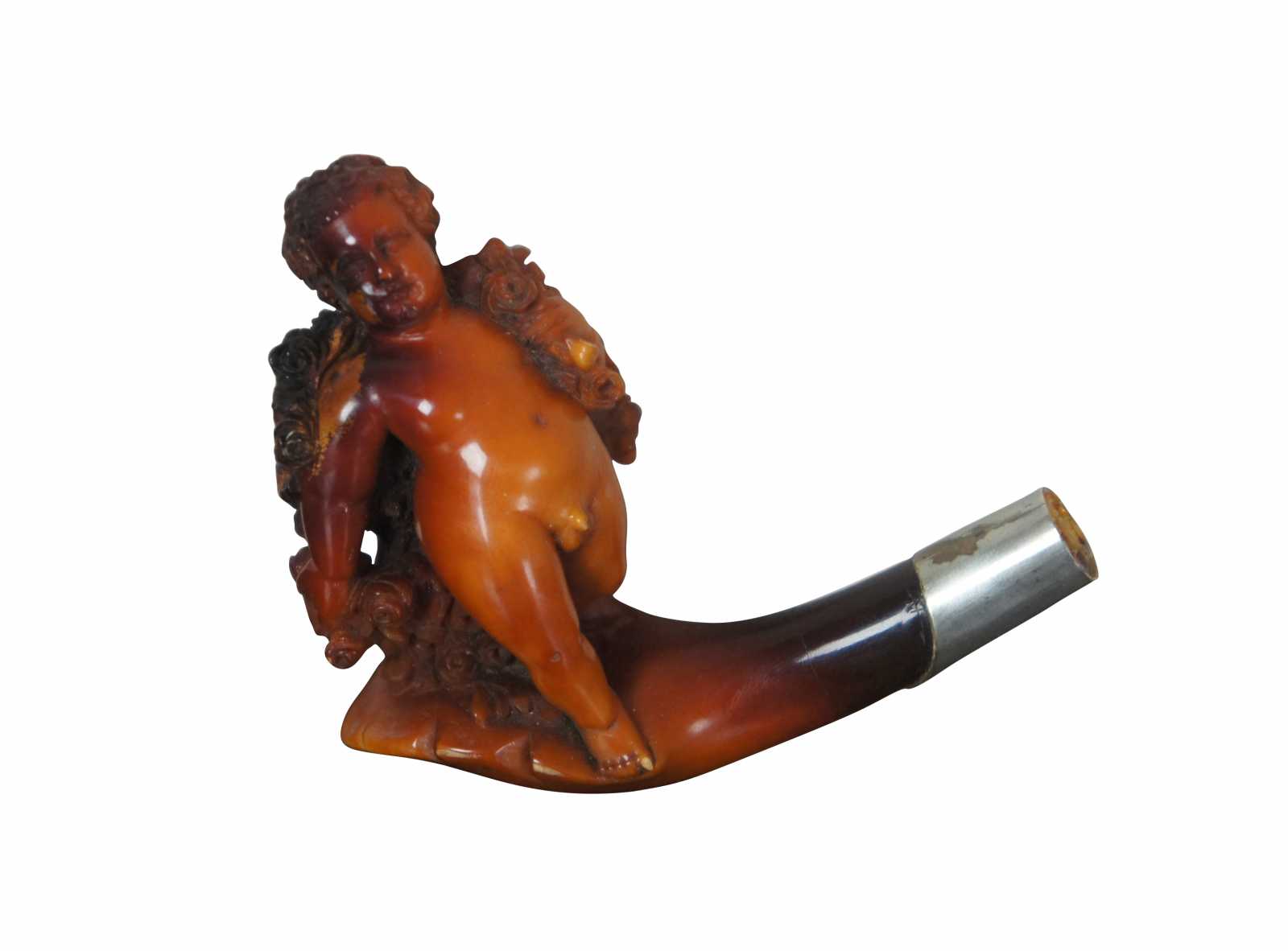 Antique carved meerschaum pipe in the shape of a classical Renaissance style cherub.