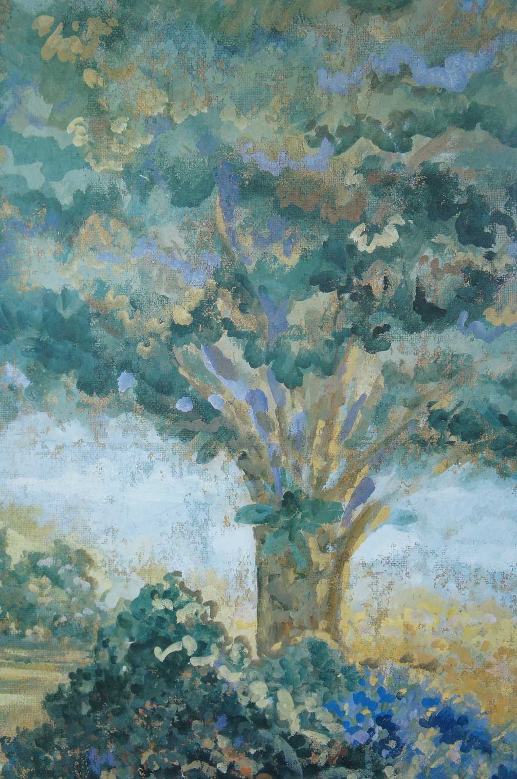 Impressionist style garden landscape. The name Rebelle and part of a year (19-) can be seen in one corner.