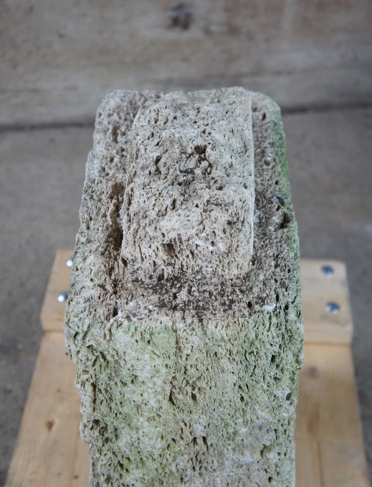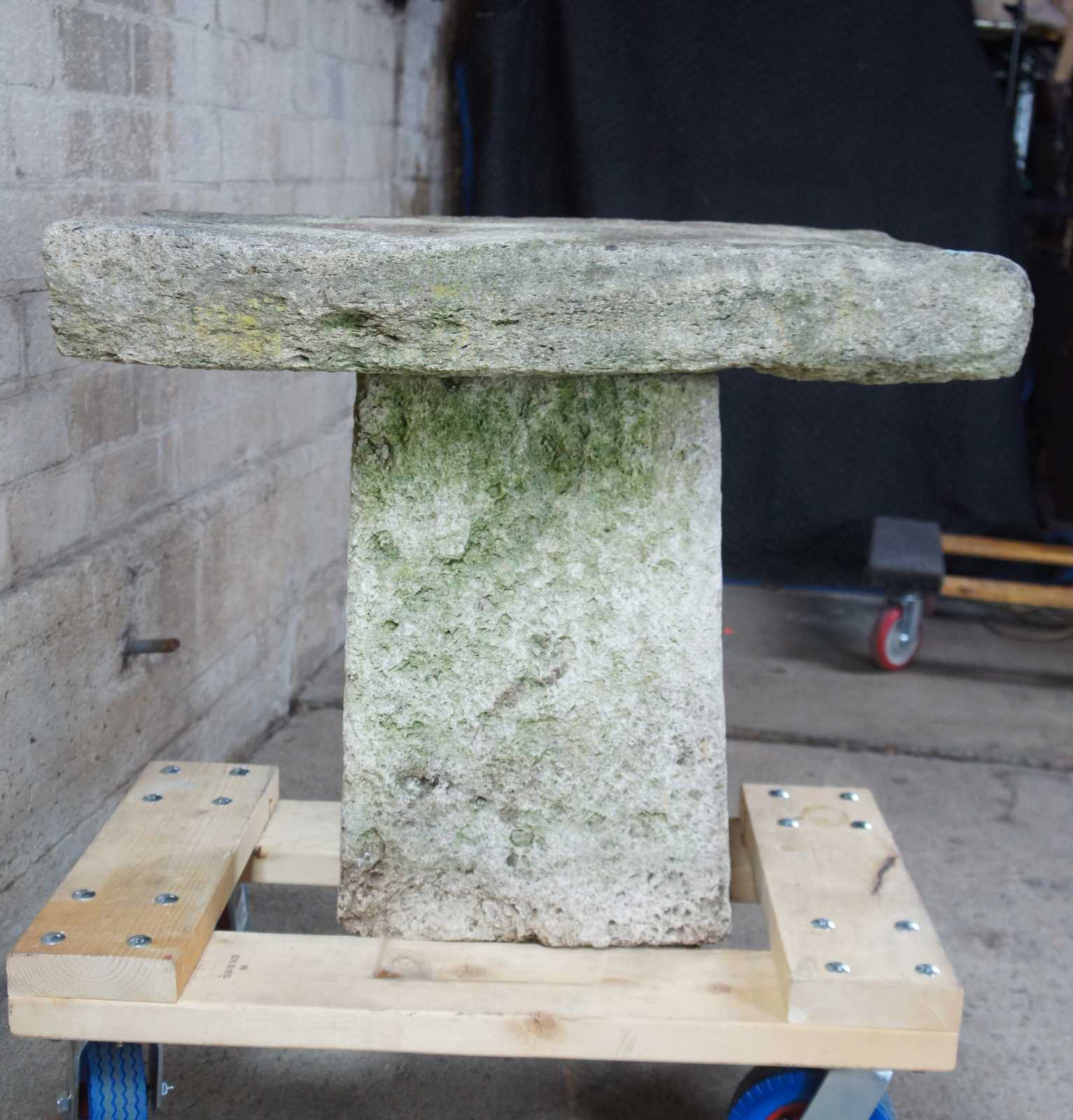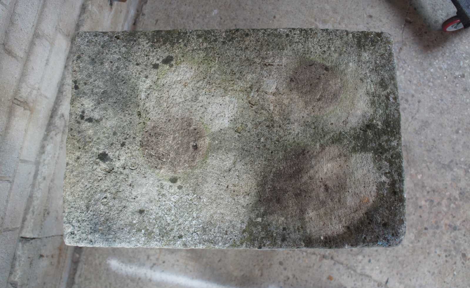 An ancient outdoor stone table or stand. Two piece design with amazing patina.