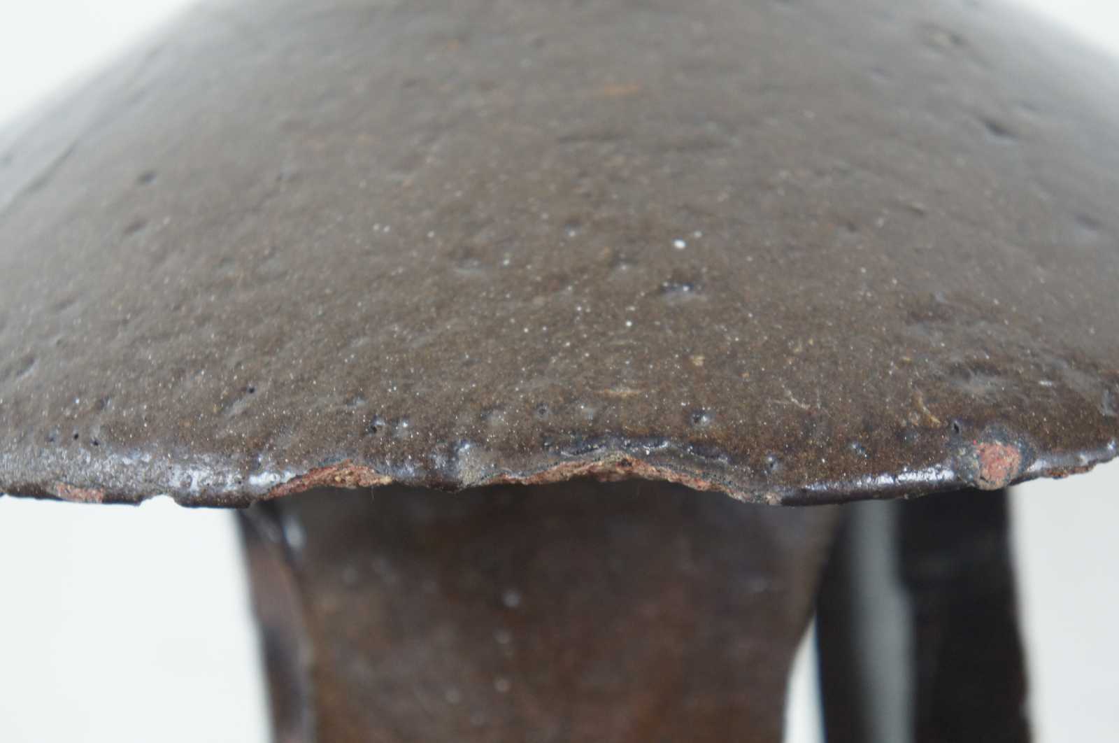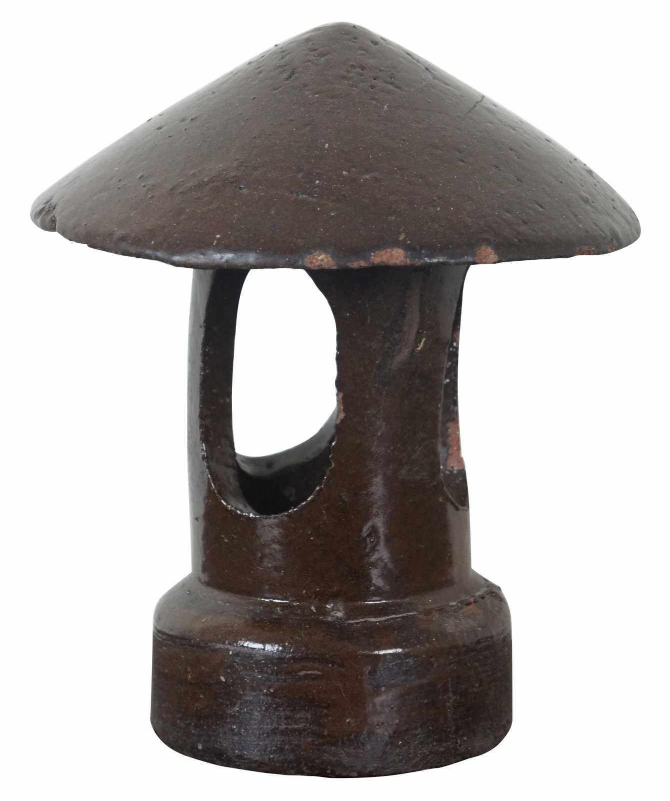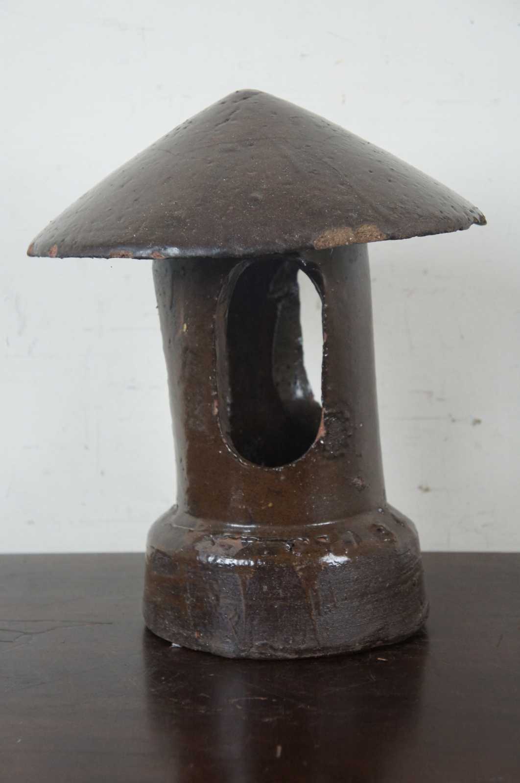 Chinese chimney topper or vent cover. Features a pagoda shape, finished in brown ceramic. Could also be used as a garden ornament or sculpture.