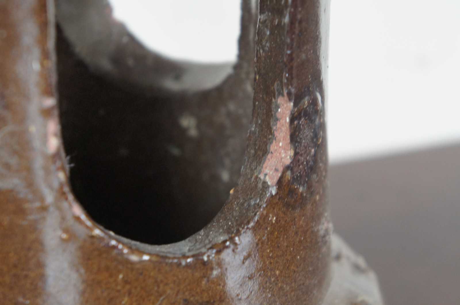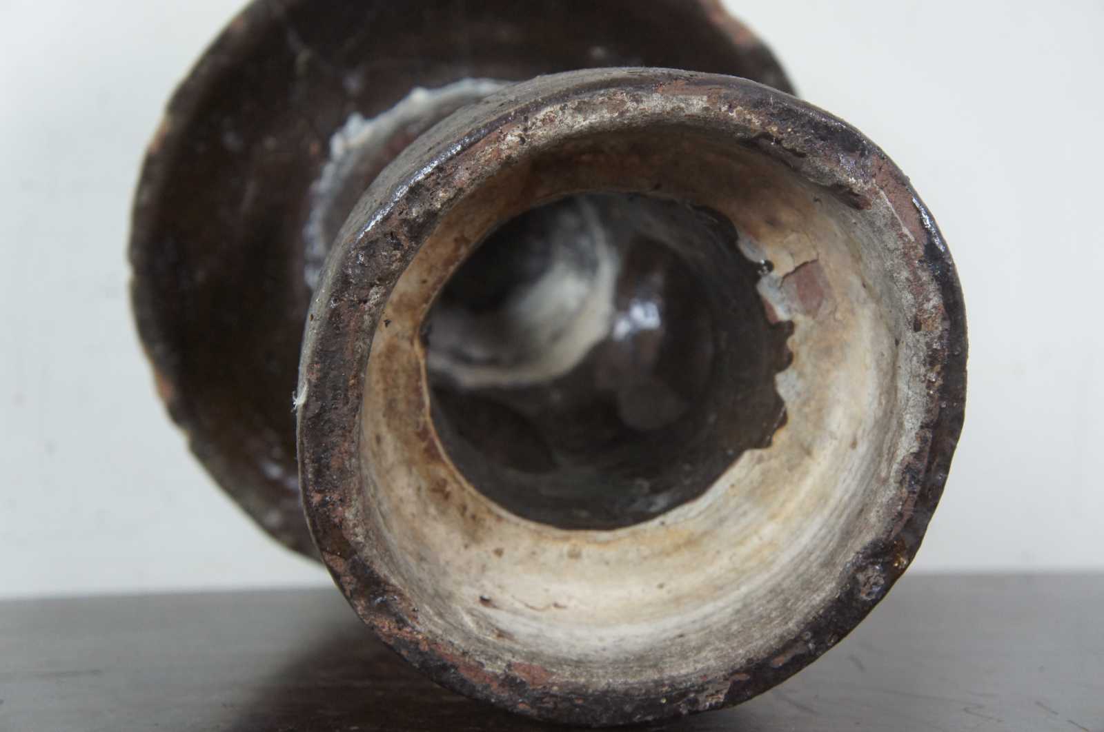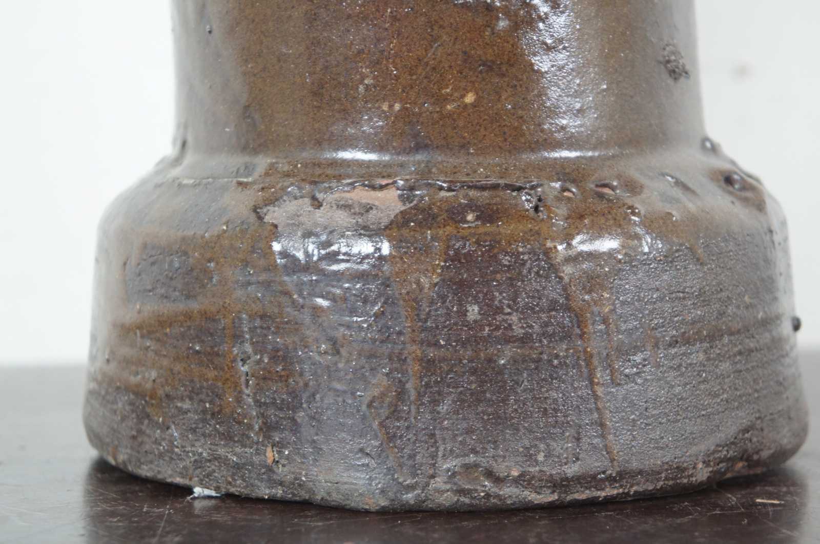 Chinese chimney topper or vent cover. Features a pagoda shape, finished in brown ceramic. Could also be used as a garden ornament or sculpture.