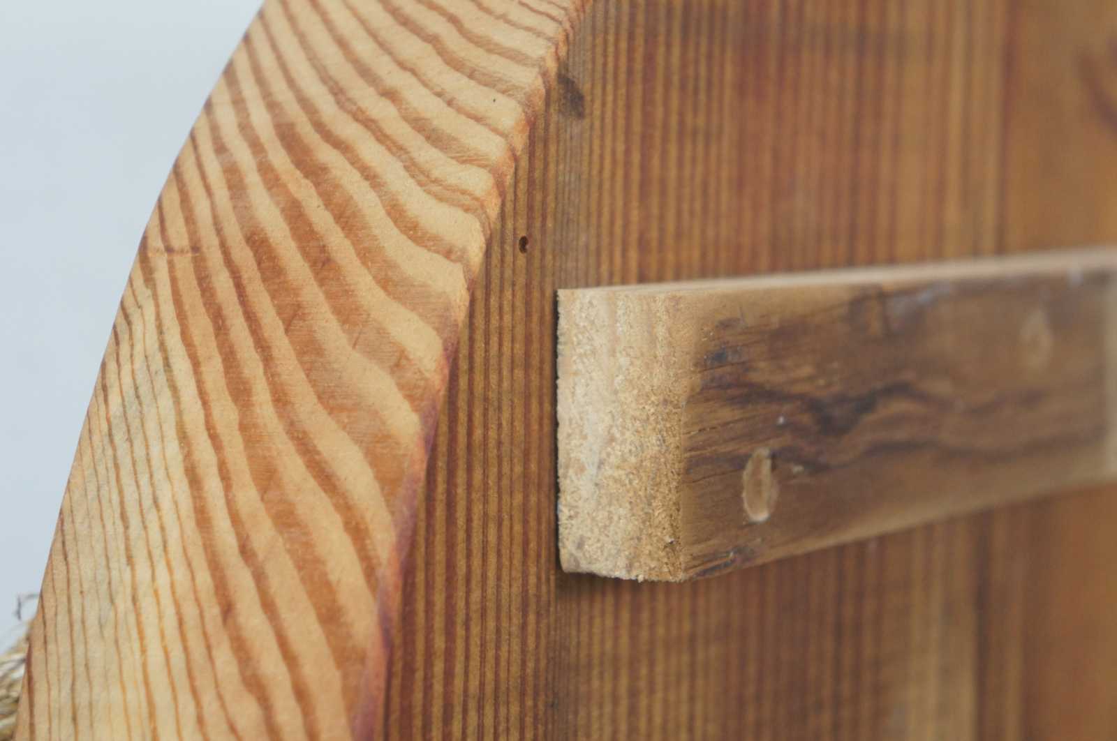 Large reclaimed pine circular cutting board butchers block with rope handles. Reclaimed from a mid 19th century building in Dayton, Ohio.