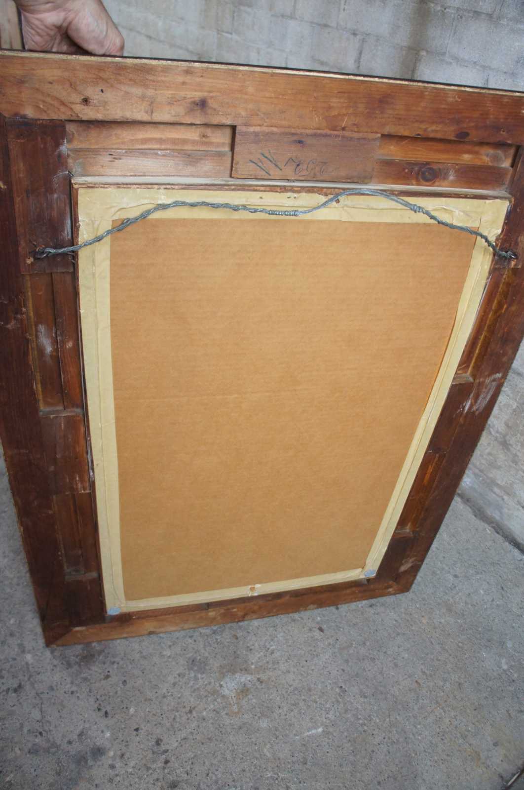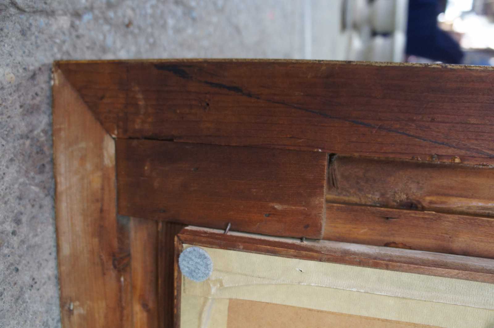Good antique condition, few spots of lost gesso, light pitting to mirror, see pictures.