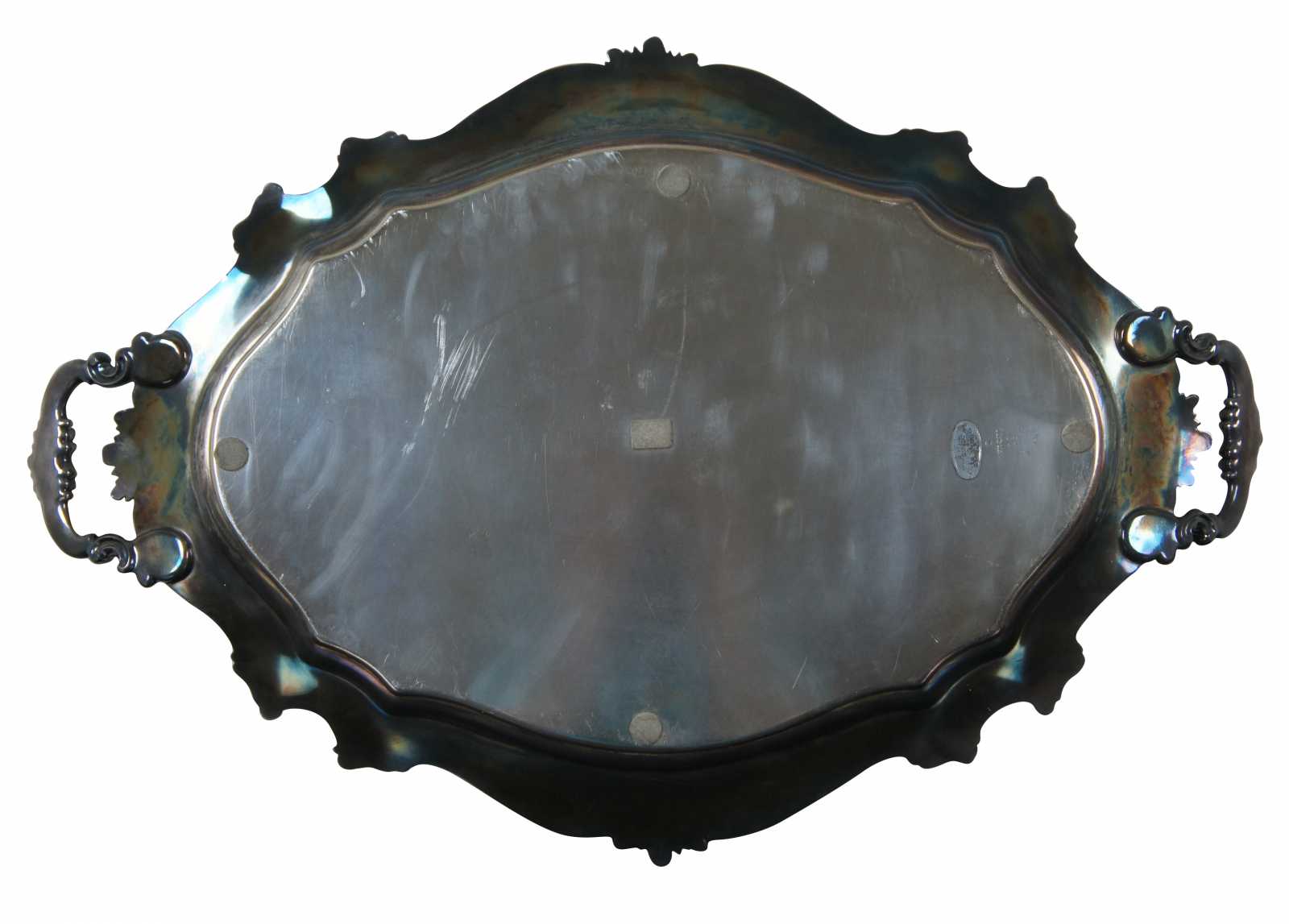 Reed & Barton silver plated tea or coffee tray. Features ornate scalloped design with handles and floral motif.