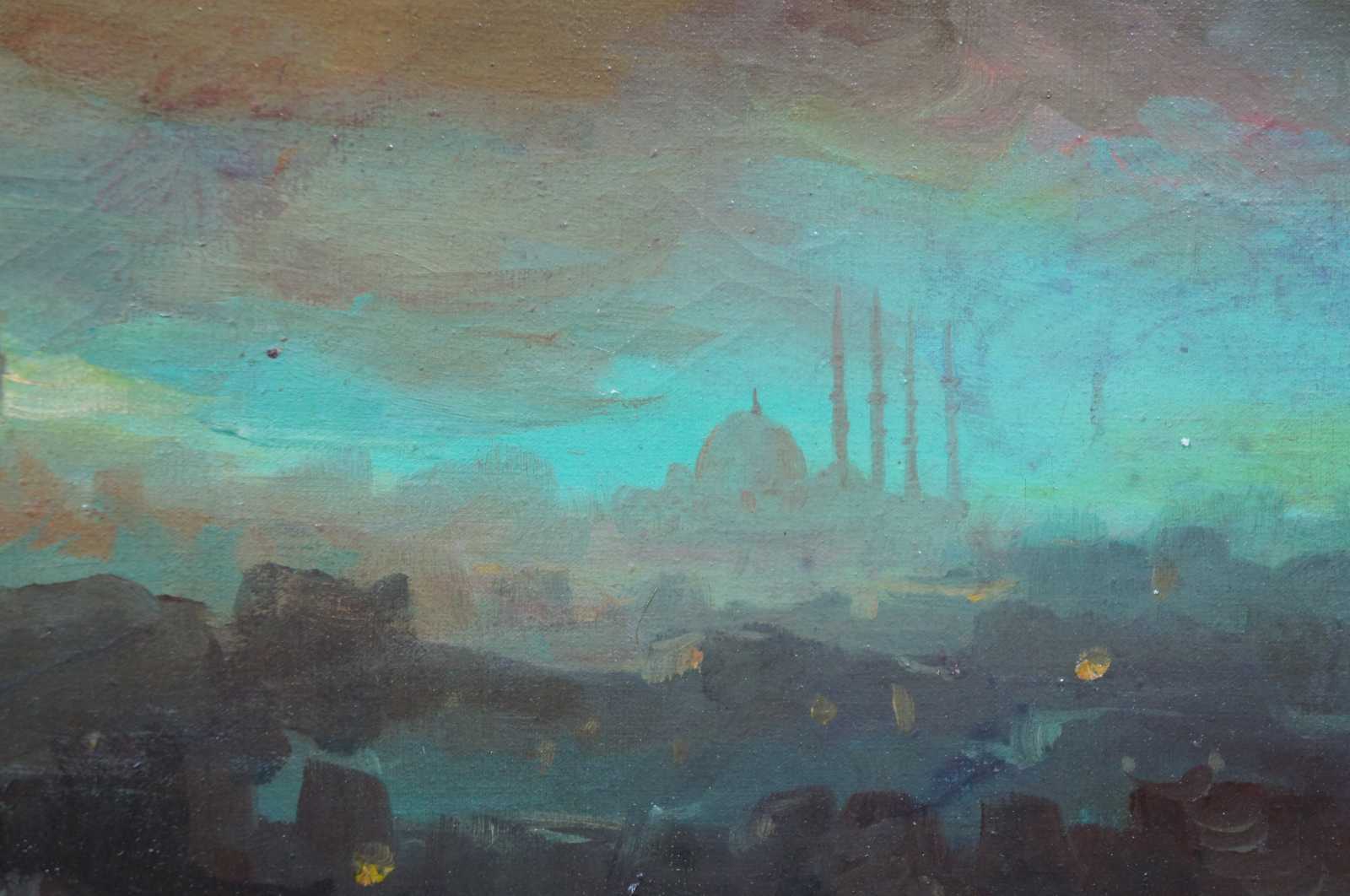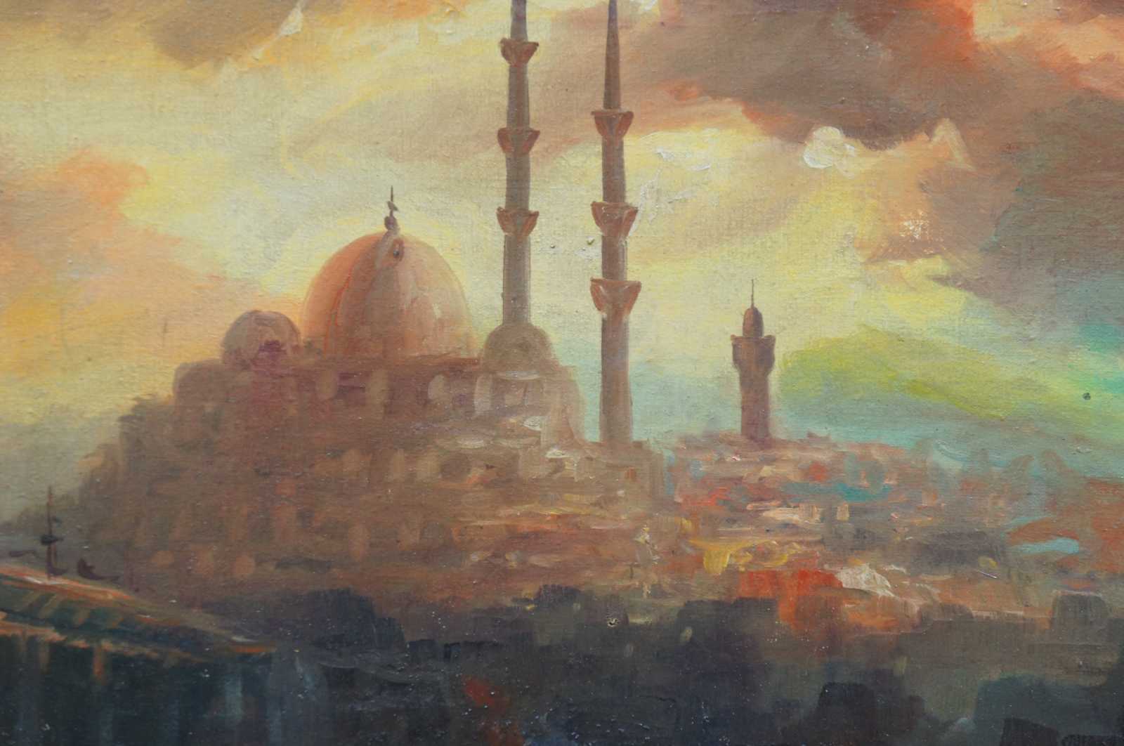 Antique Isfahan Iran Cityscape Painting Impressionist Mosque Skyline Framed 44"