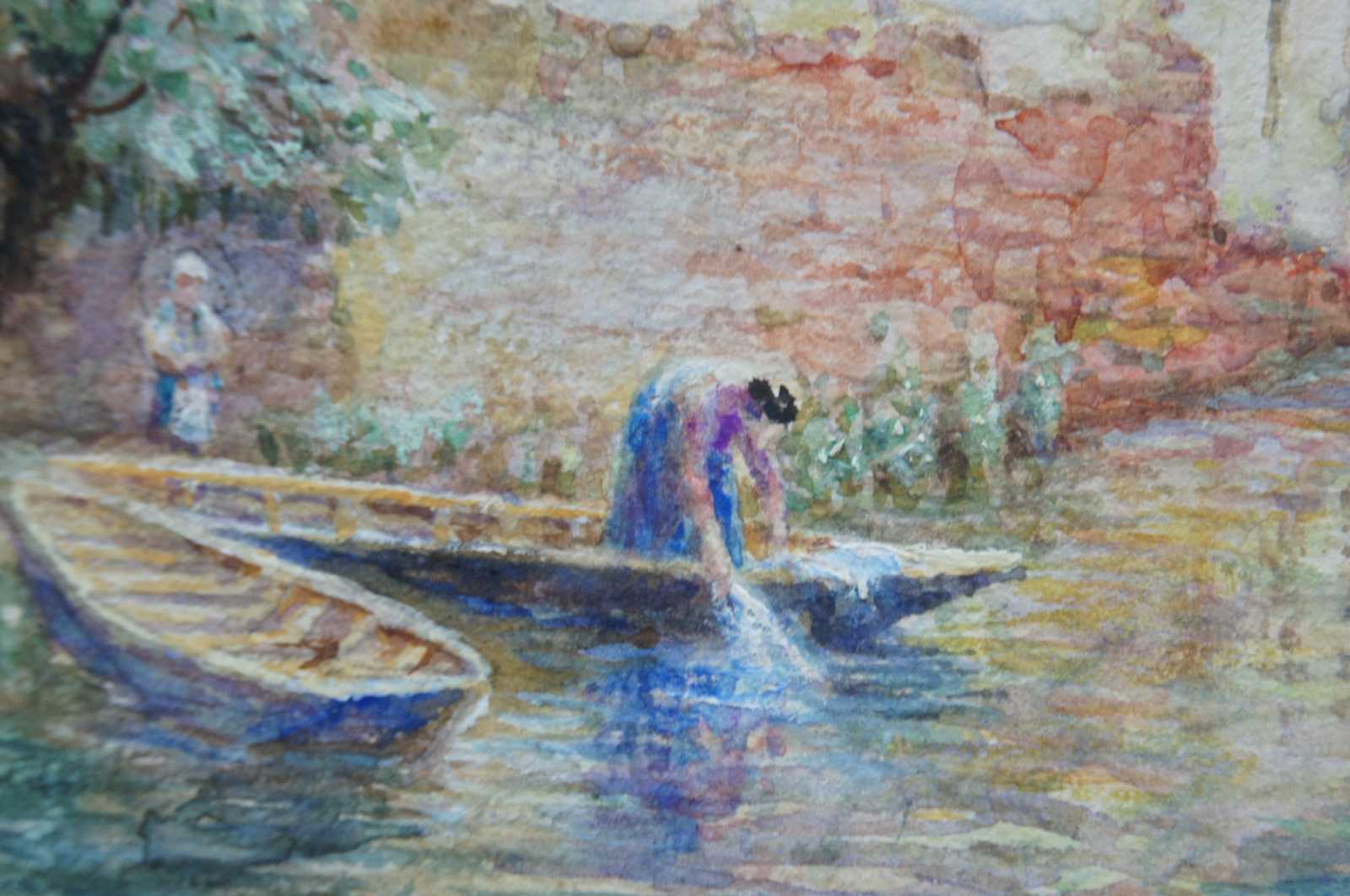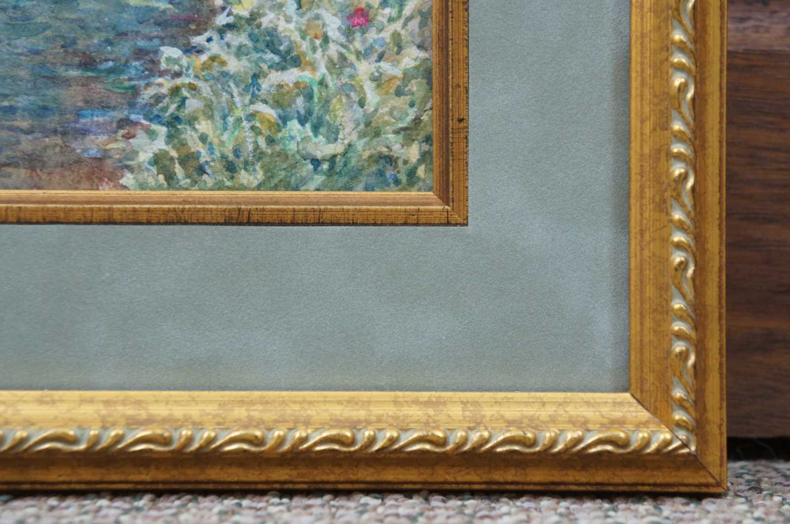 V.P. Richards (British) early 19th century Impressionist artist. A colorful watercolor landscape of Mapledurham Mill, Oxfordshire (England). Painted on Paper, signed lower left and framed. Mapledurham watermill is a historic watermill that was built during the 15th century. Currently a museum.