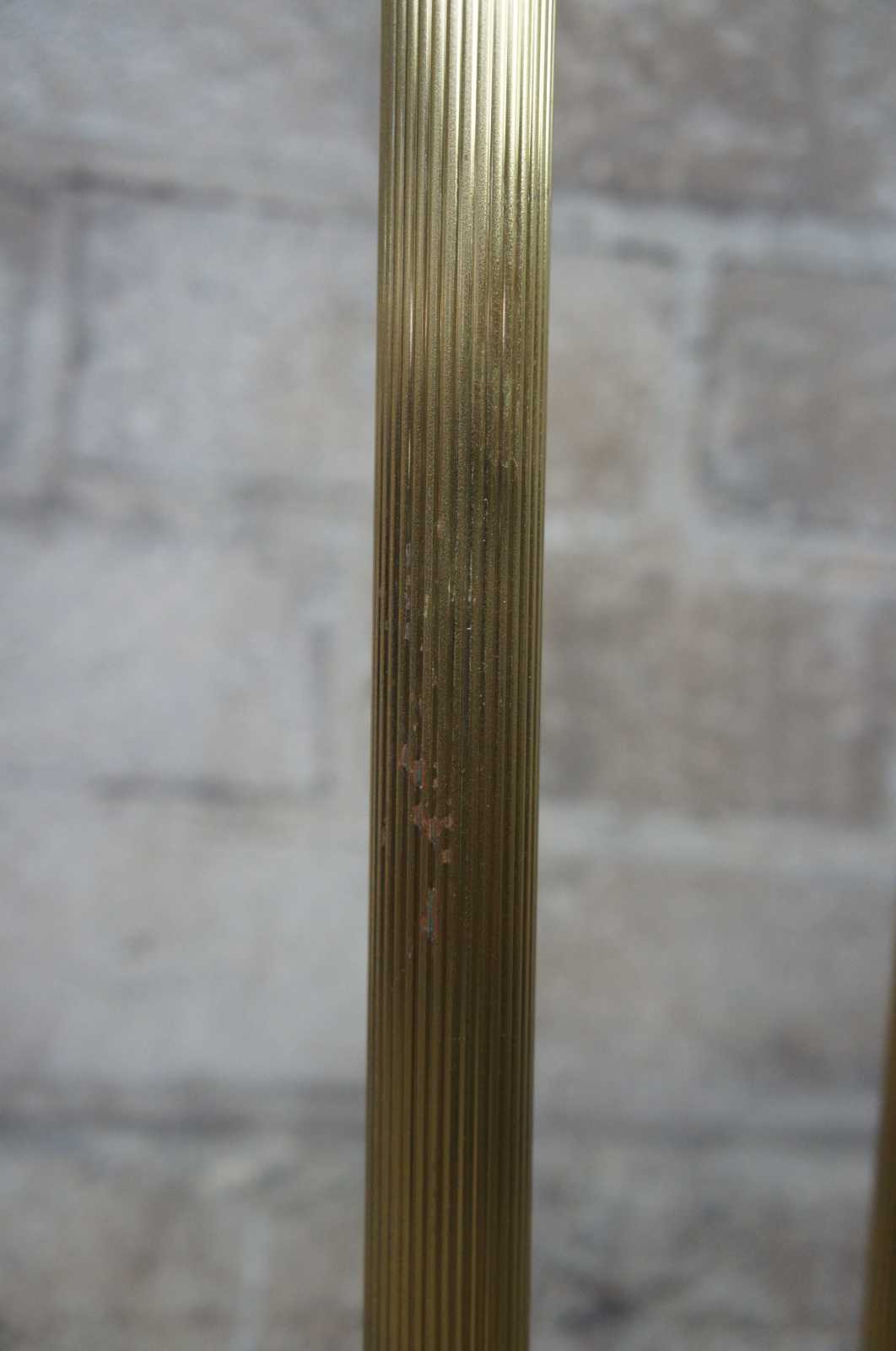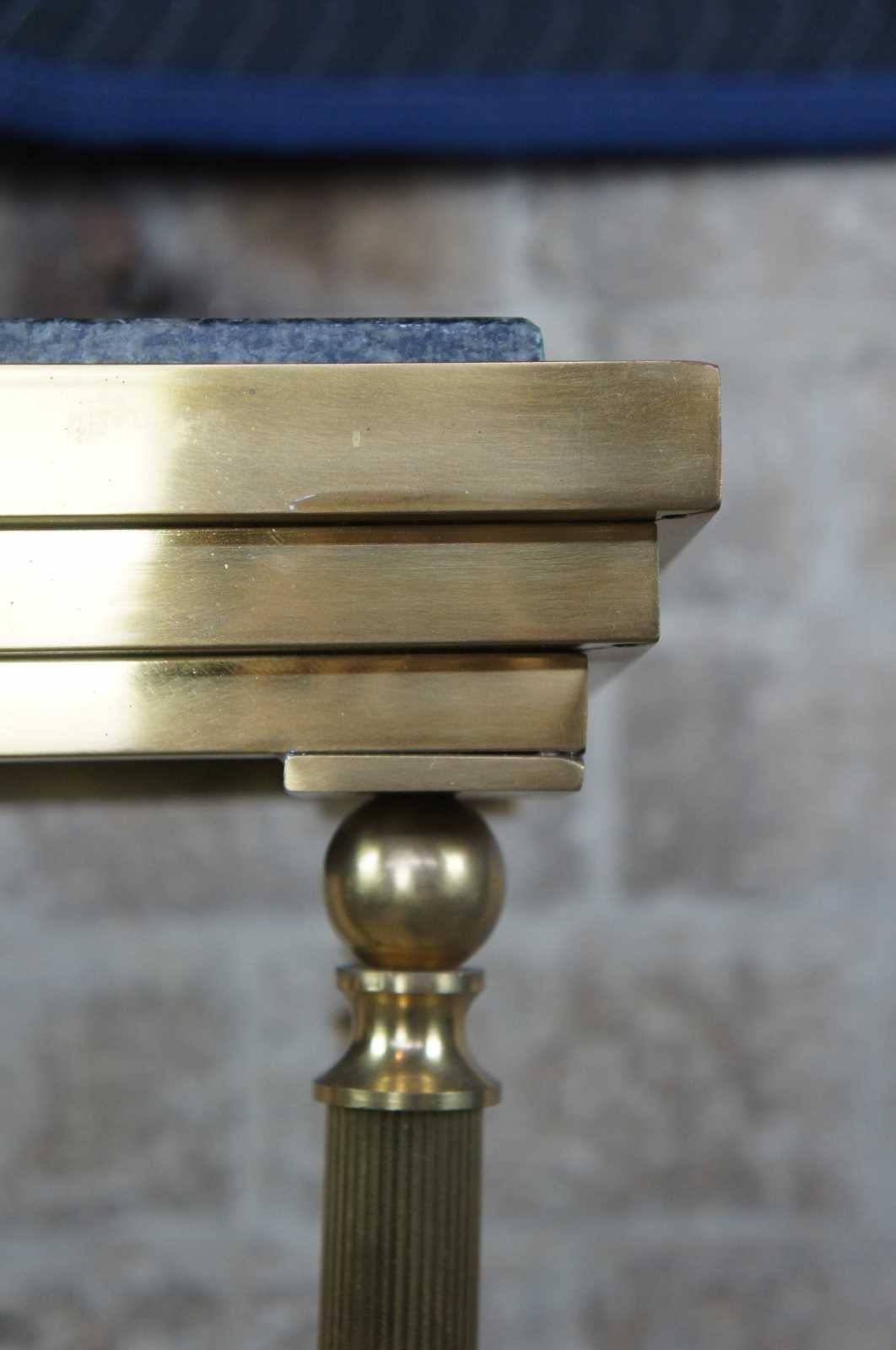 Late 20th century Italian regency style brass and granite plant stand. Features long fluted legs, tapered to paw feet.
