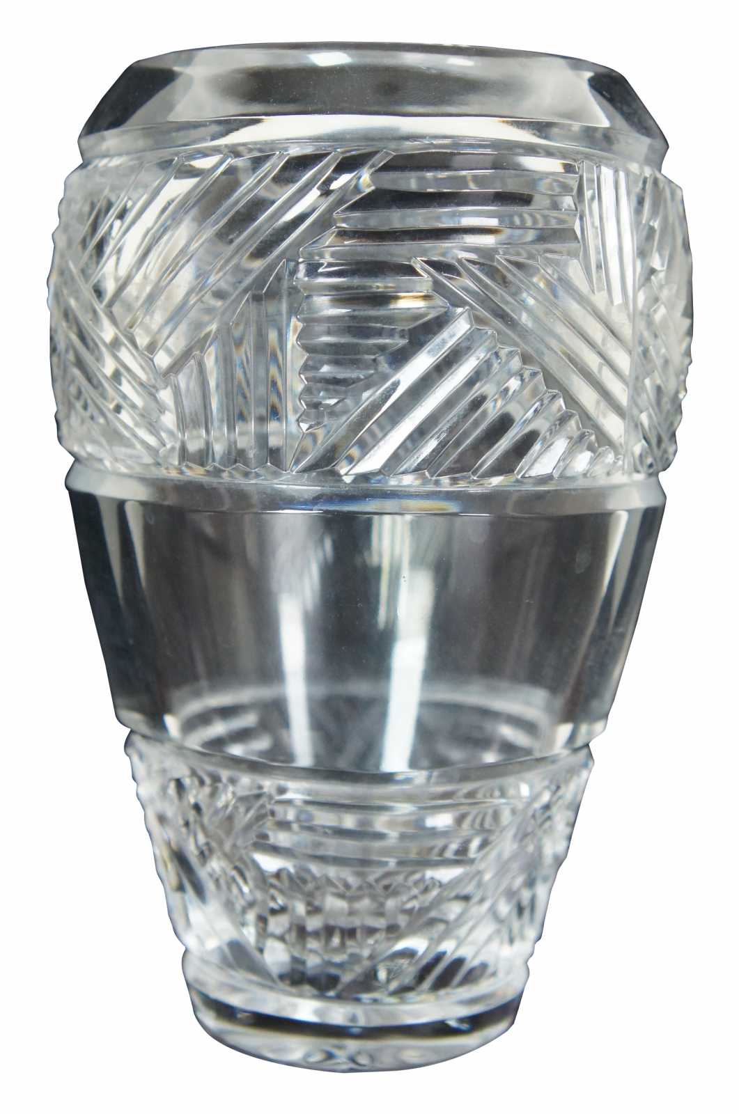 Villeroy & Boch cut crystal flower vase in the Aspen crosshatch pattern.