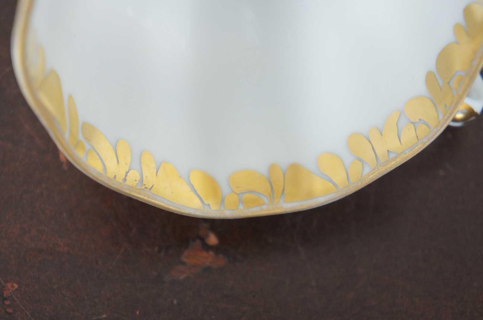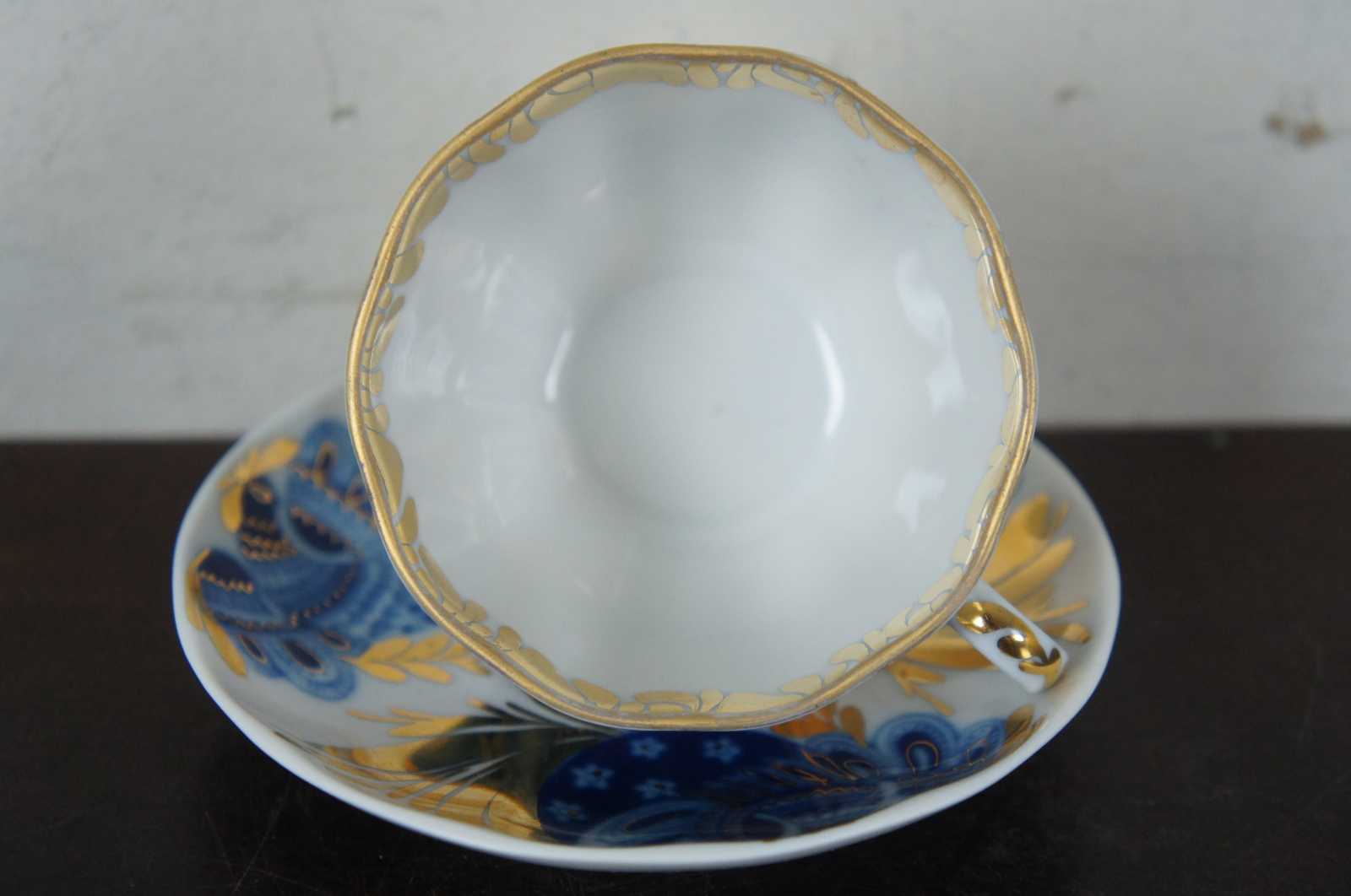 Lomonosov Russian Imperial porcelain, cobalt blue and 22kt gold teacup and saucer in the Golden Garden pattern.